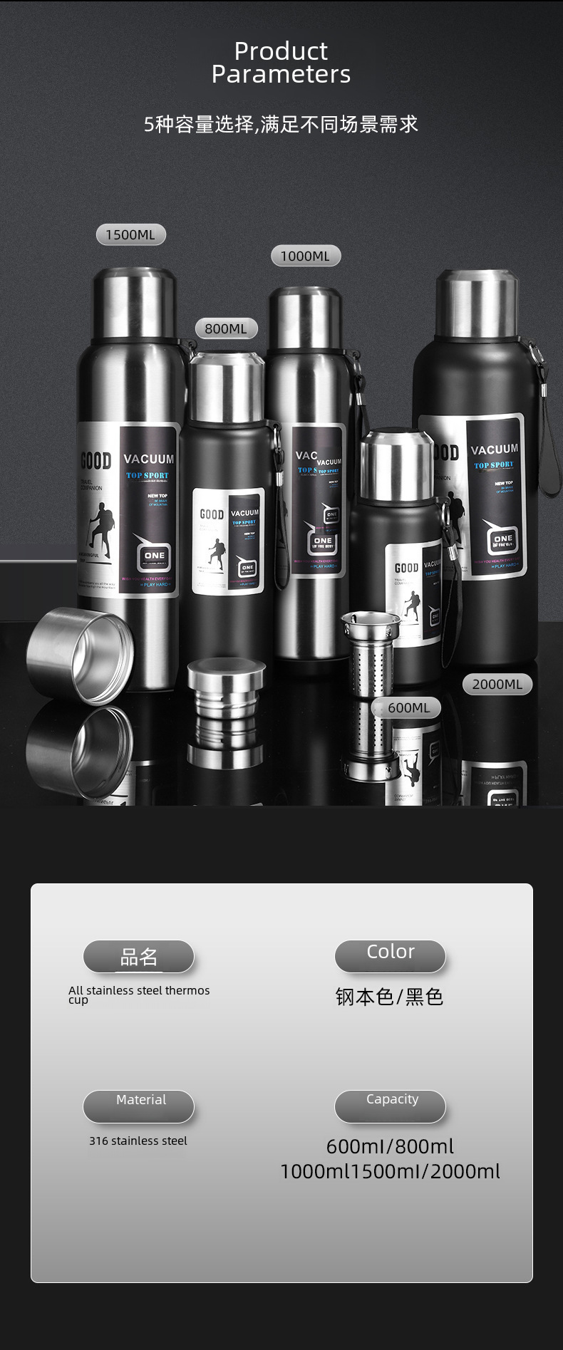 316不鏽鋼內膽真空全鋼保溫壺男士戶外旅行登山可攜式大容量保溫杯