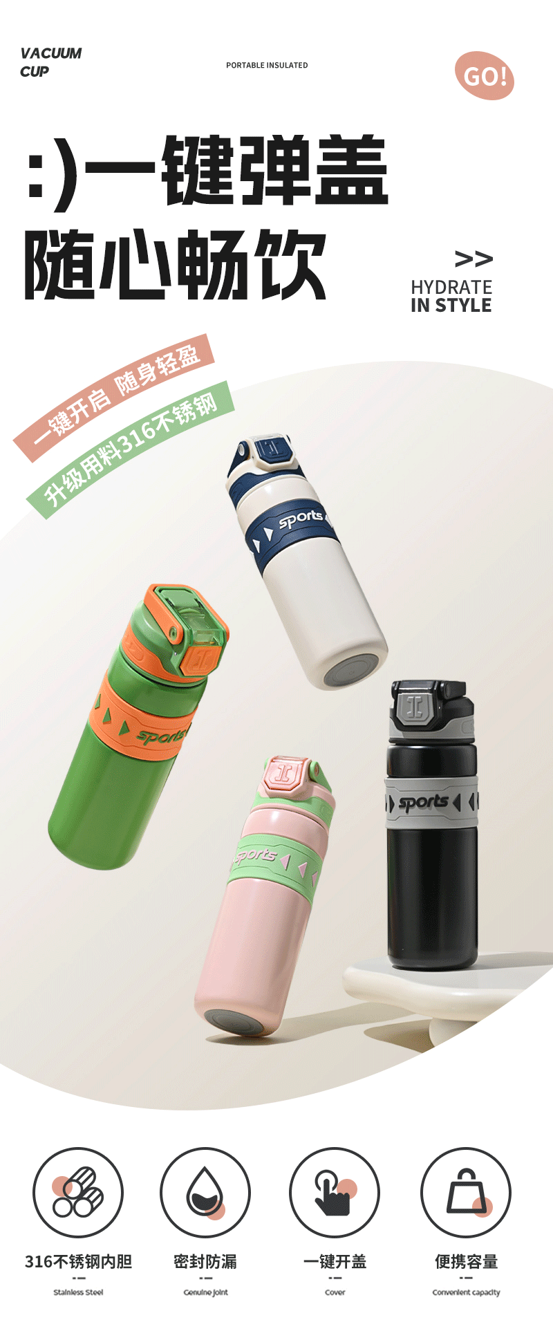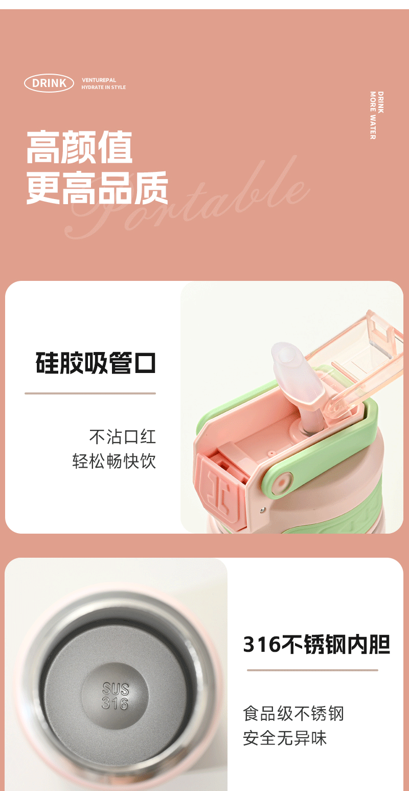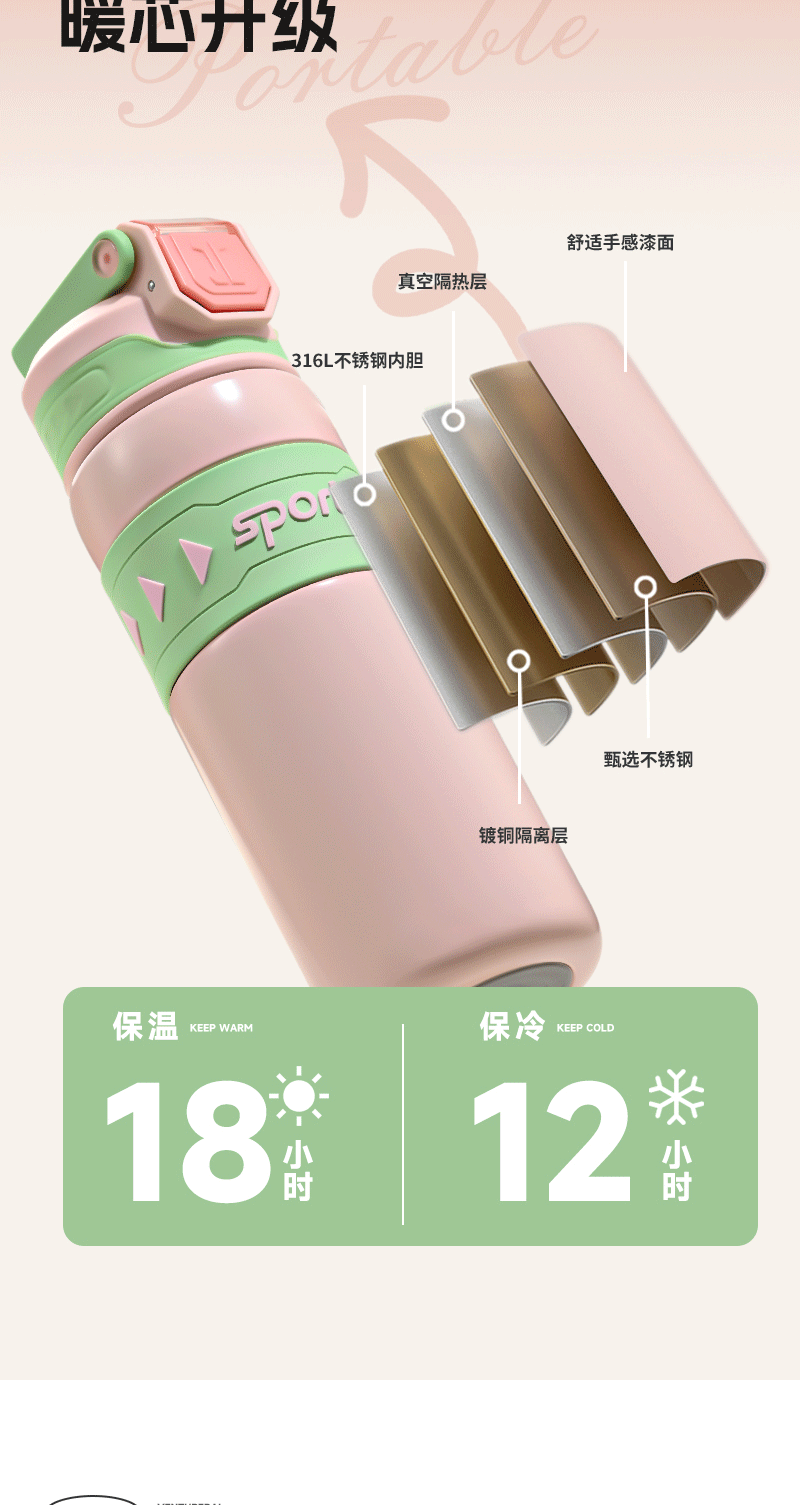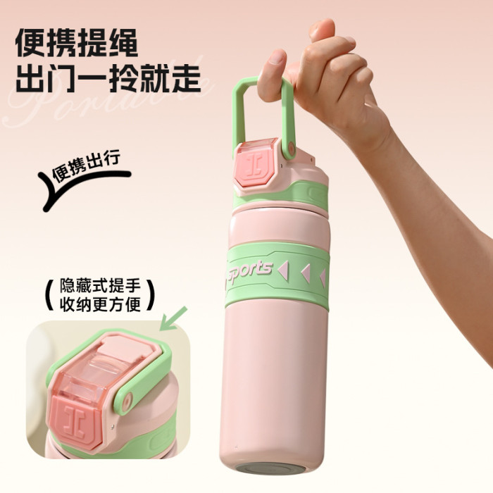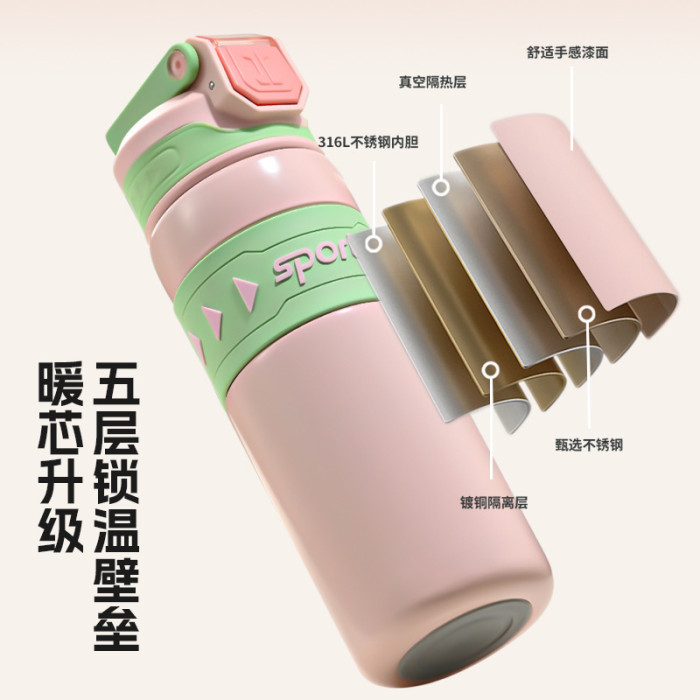 運動水壺保溫杯316不鏽鋼吸管水杯保溫保冷可攜式戶外彈跳學生杯子