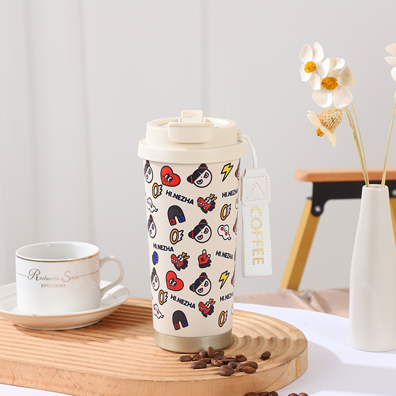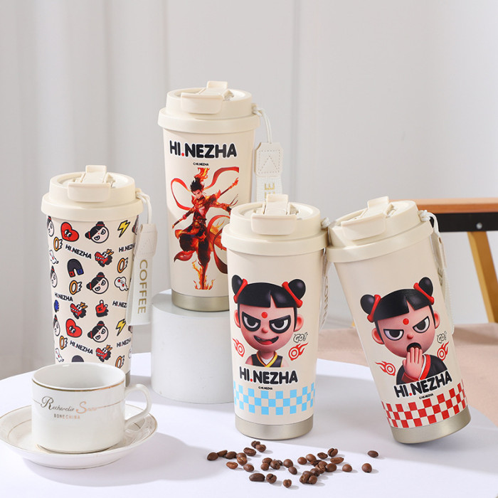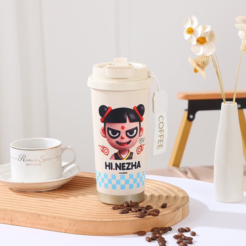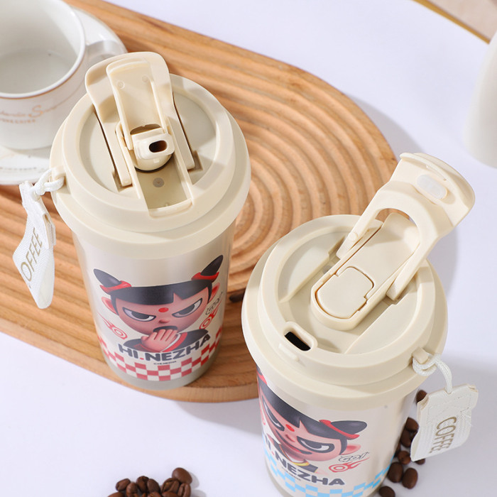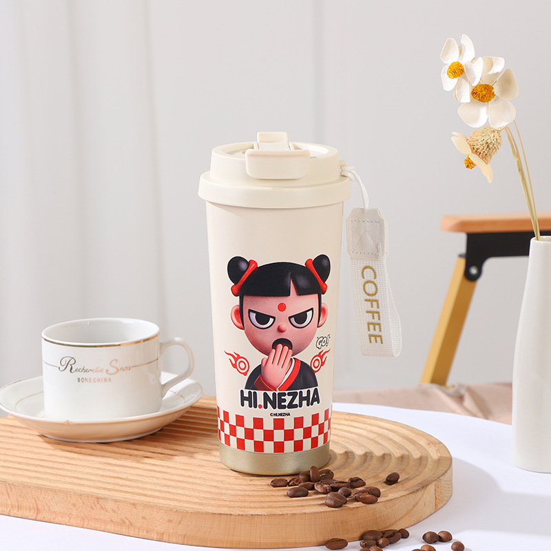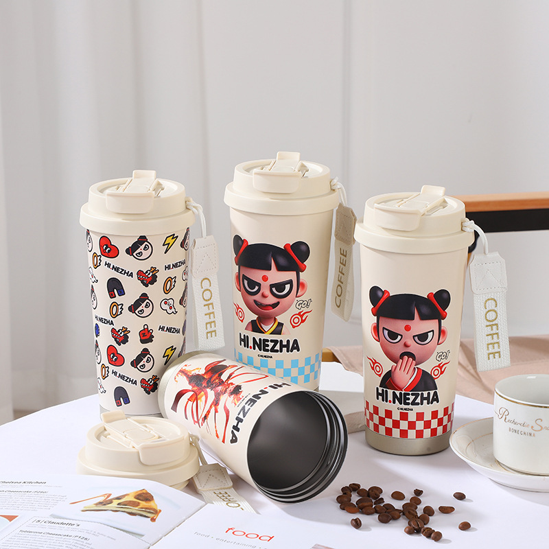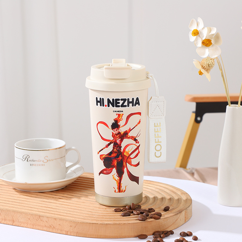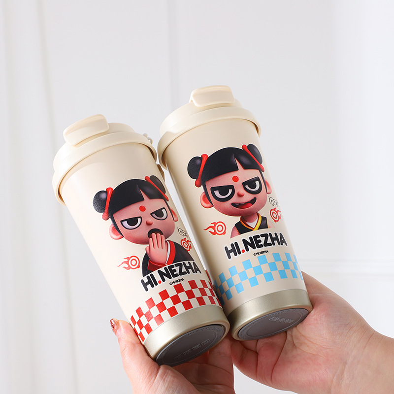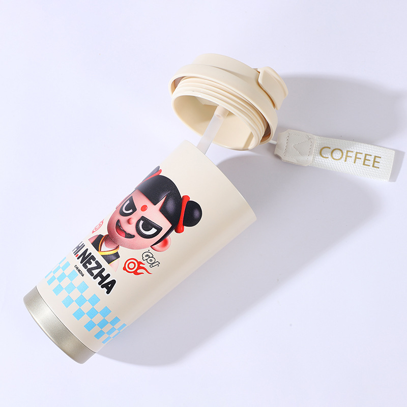 哪吒二魔童閙海雙飲吸管杯316不鏽鋼男女高顔值咖啡杯保溫杯
