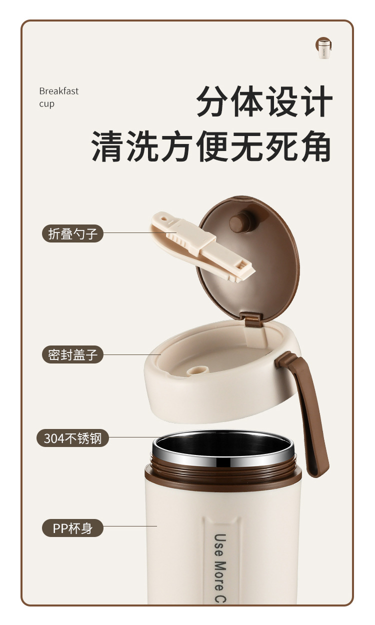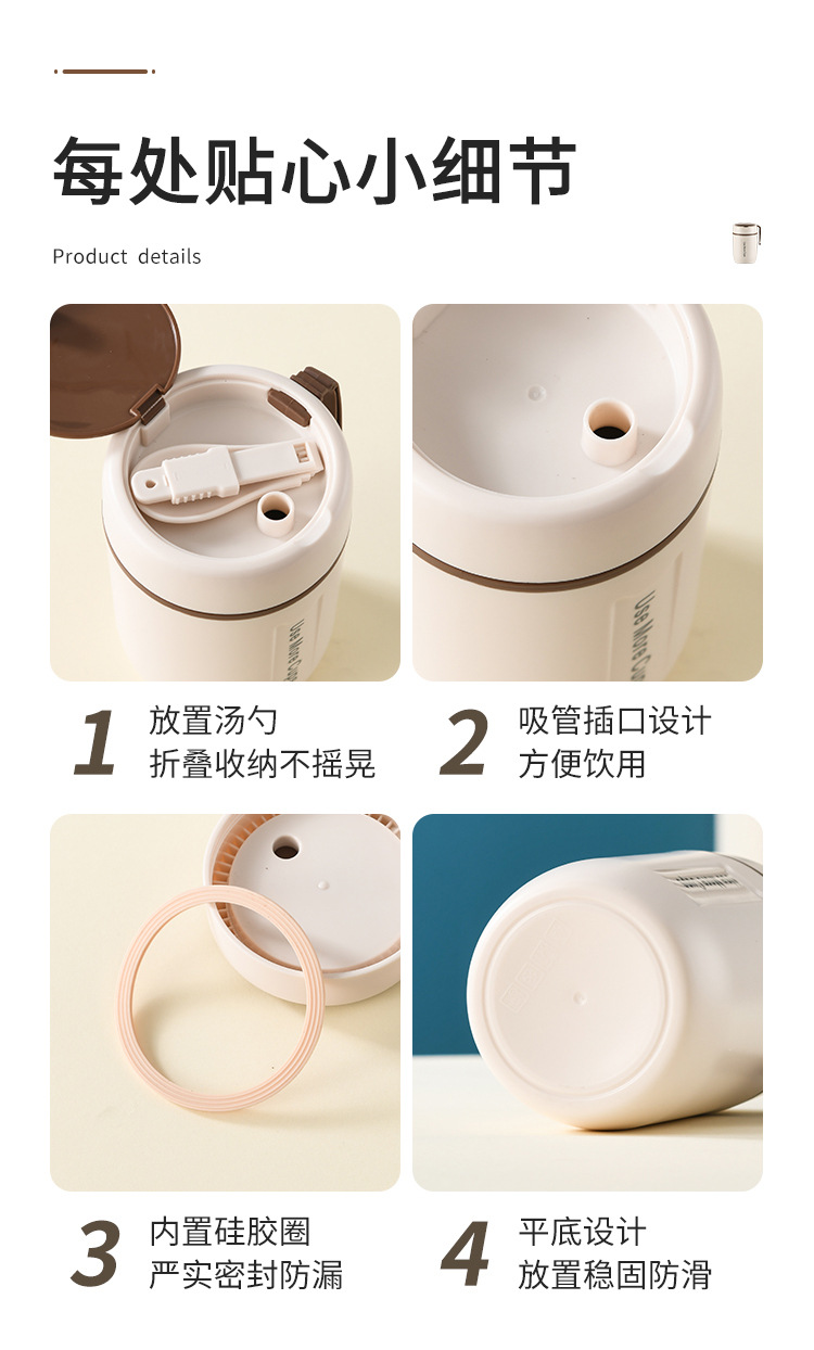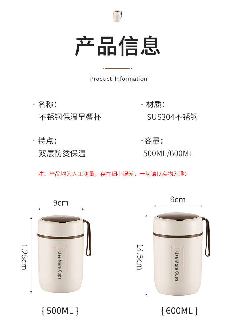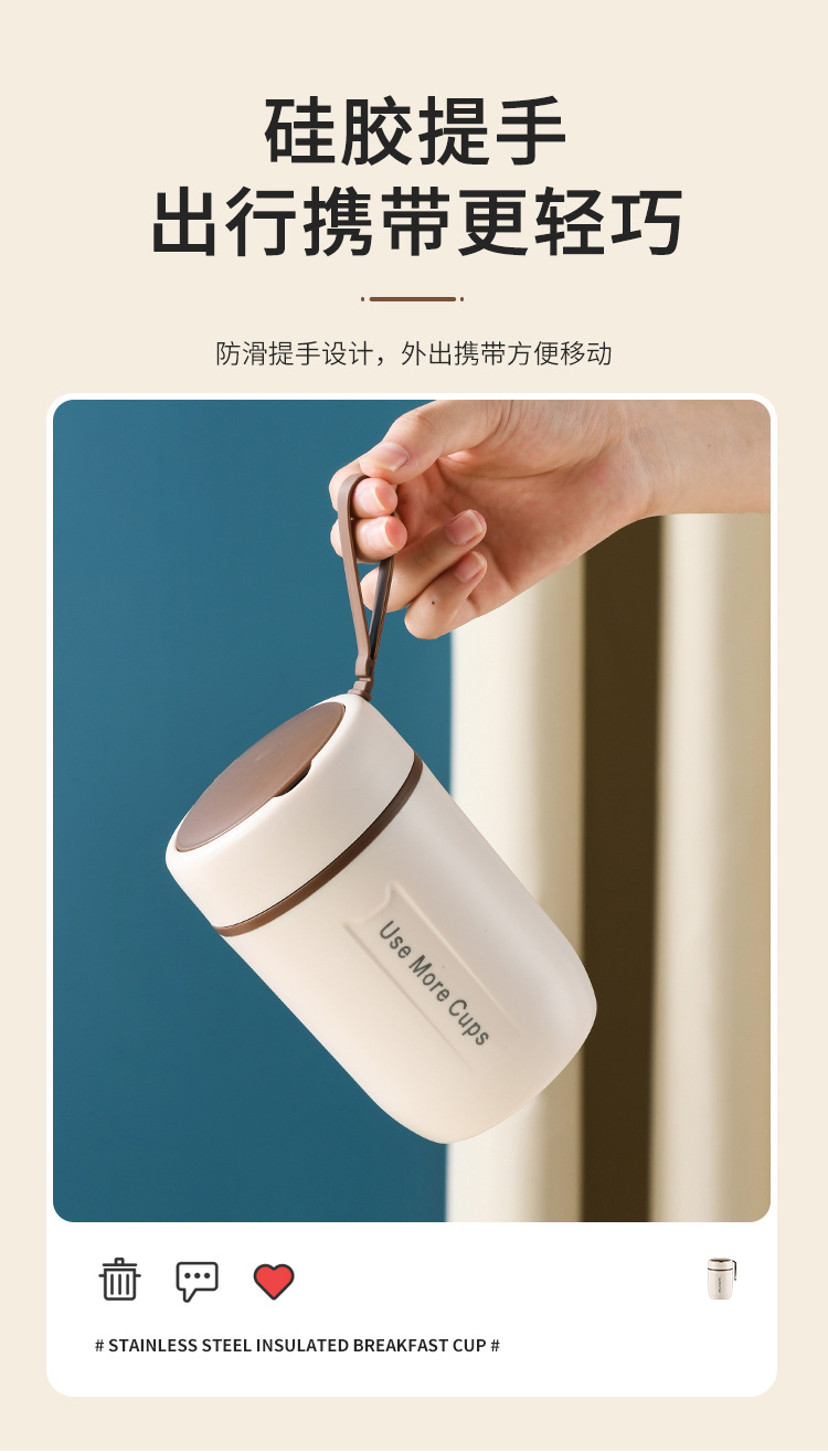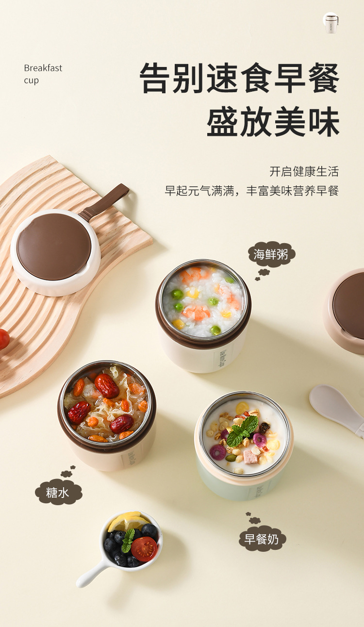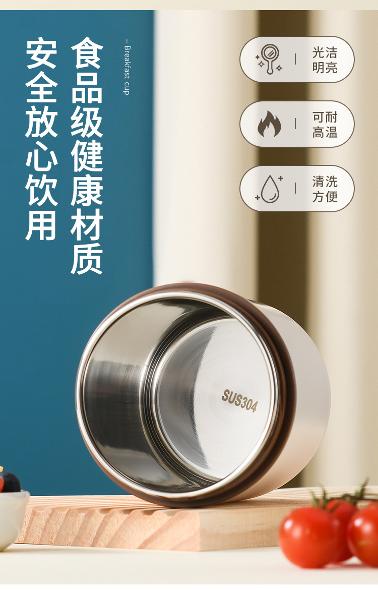 304不鏽鋼內膽保溫杯密封可攜式高顔值上班族早餐杯銀耳牛奶保溫杯