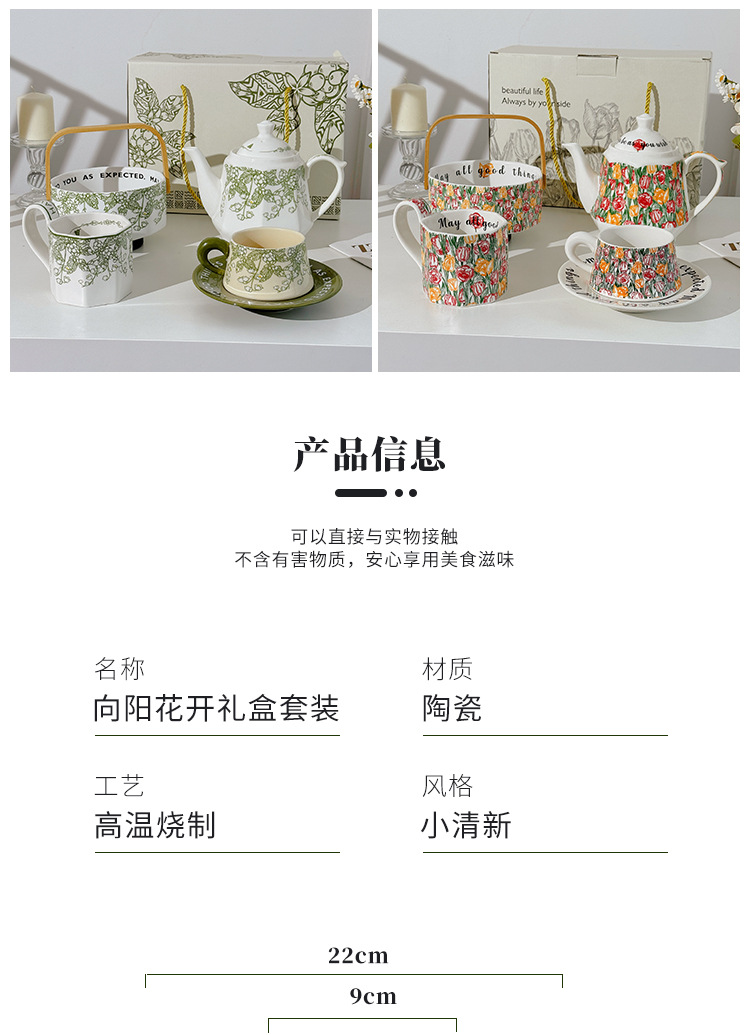 向陽花開系列陶瓷馬克杯早餐杯咖啡杯冷水壺水果手提藍喬遷禮品