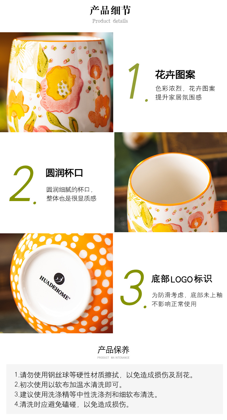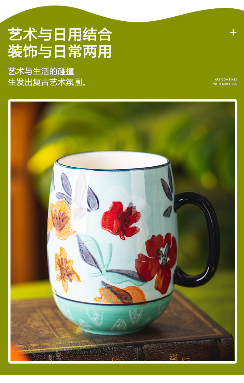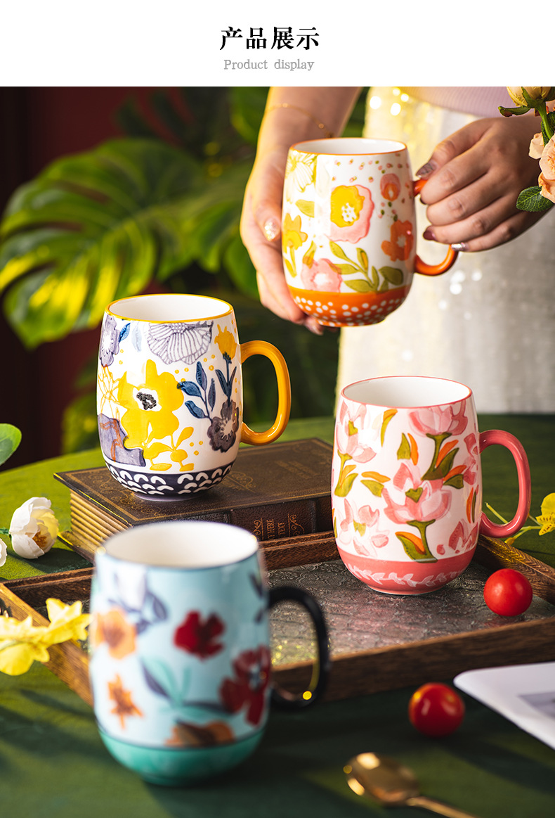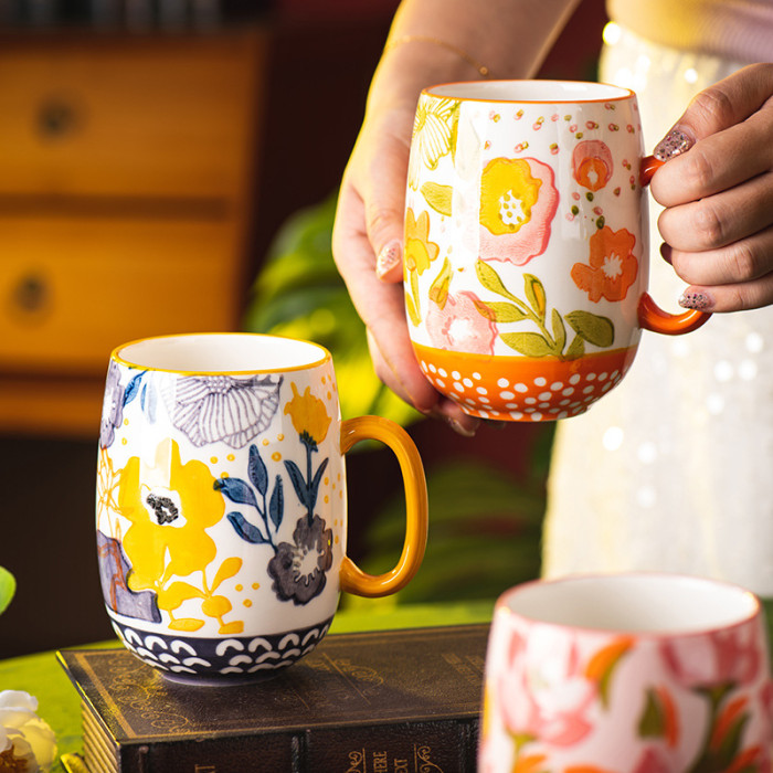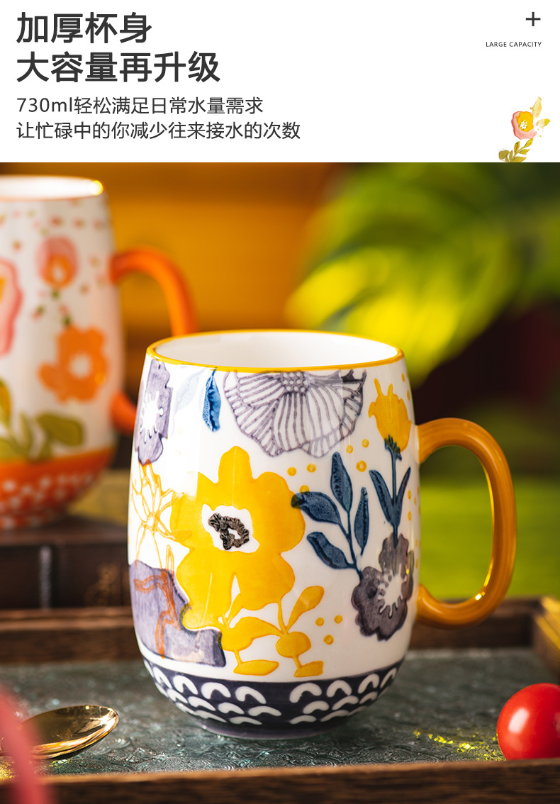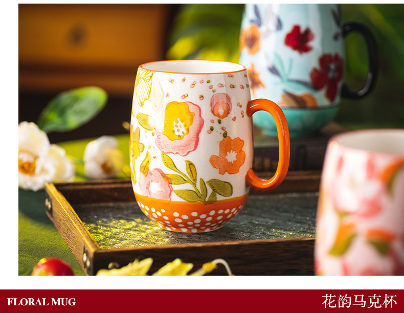 花韻馬克杯陶瓷杯家用水杯辦公室精緻早餐杯情侶杯子大容量咖啡杯