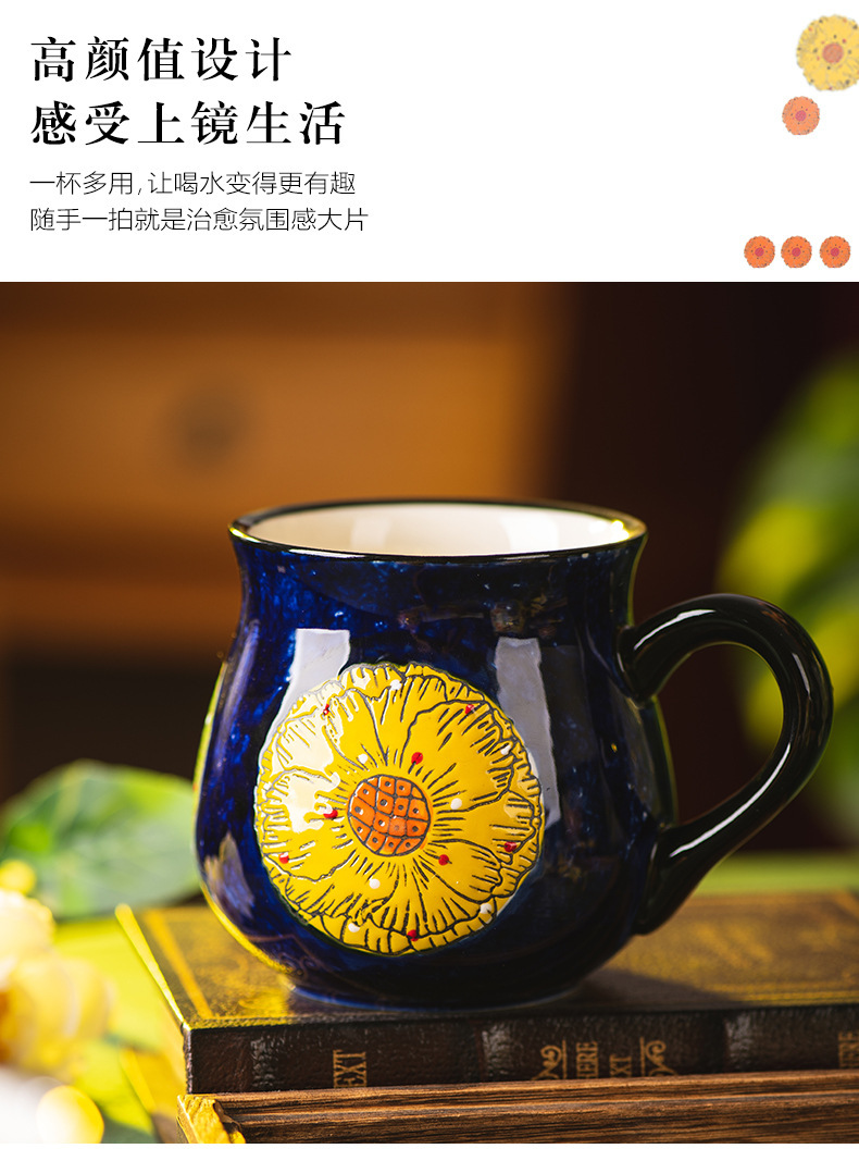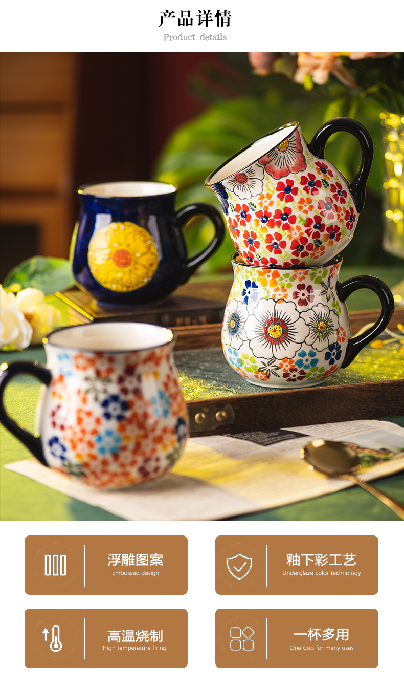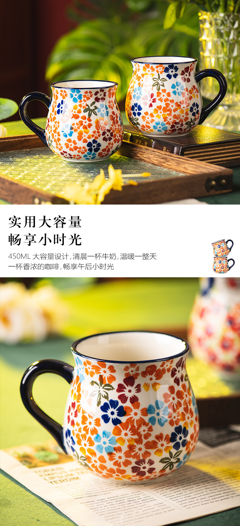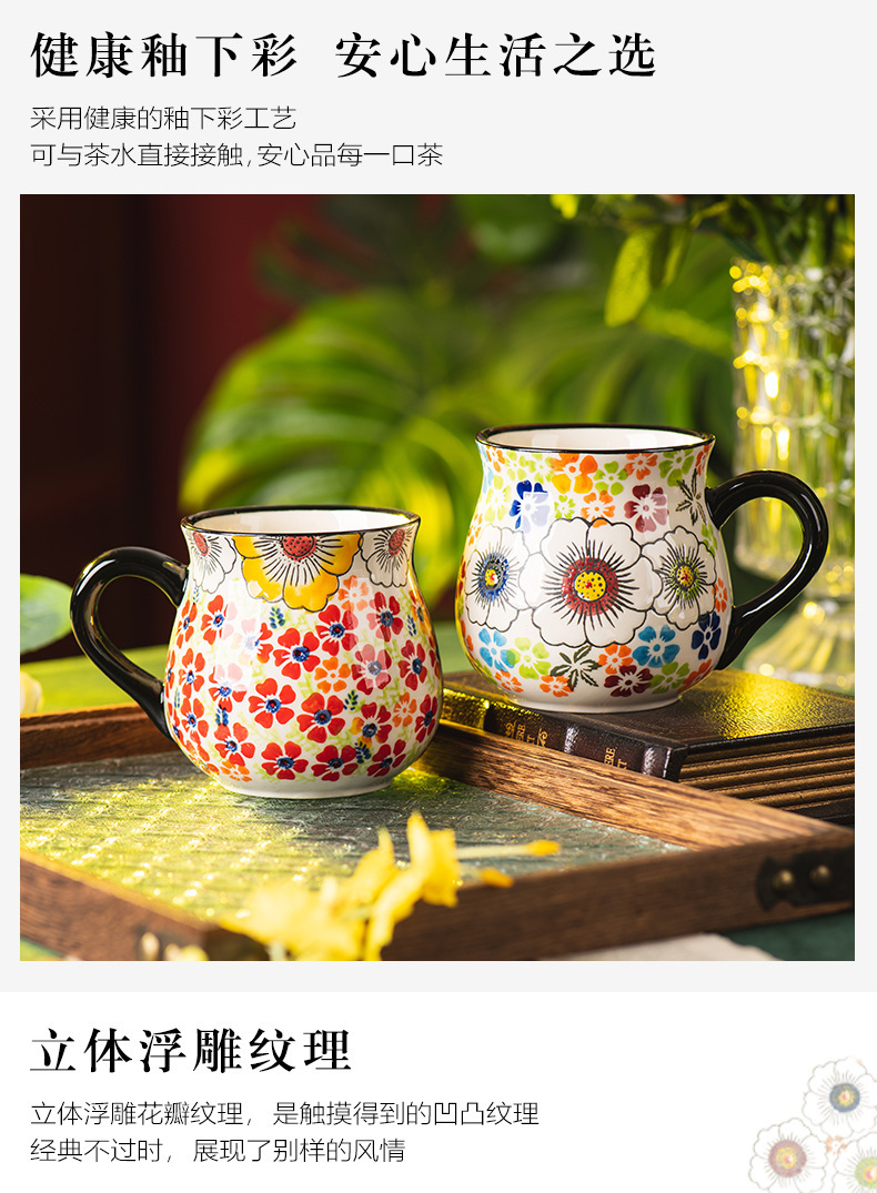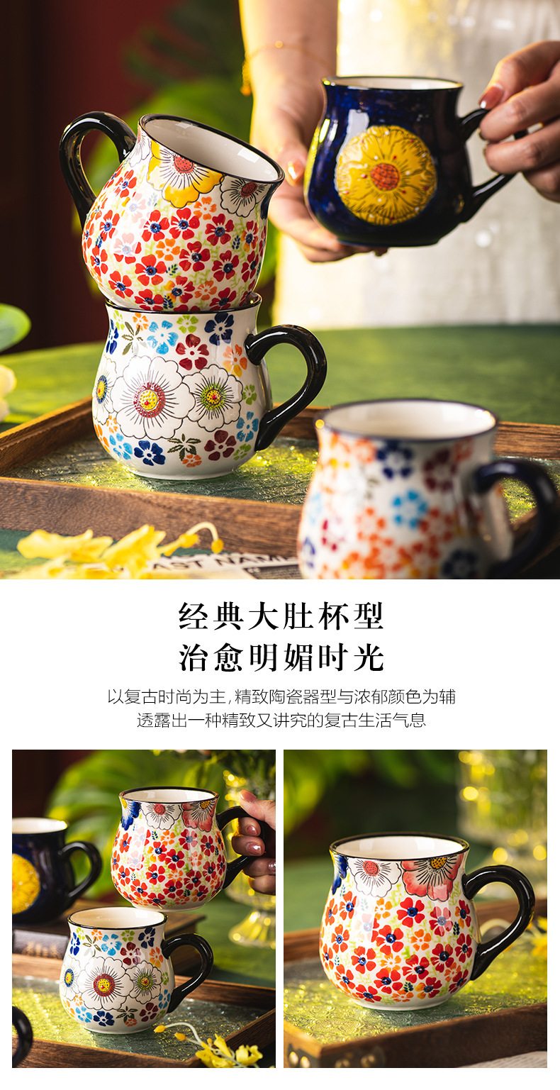 手繪馬克杯創意水杯辦公室早餐陶瓷杯家用復古杯情侶杯咖啡杯