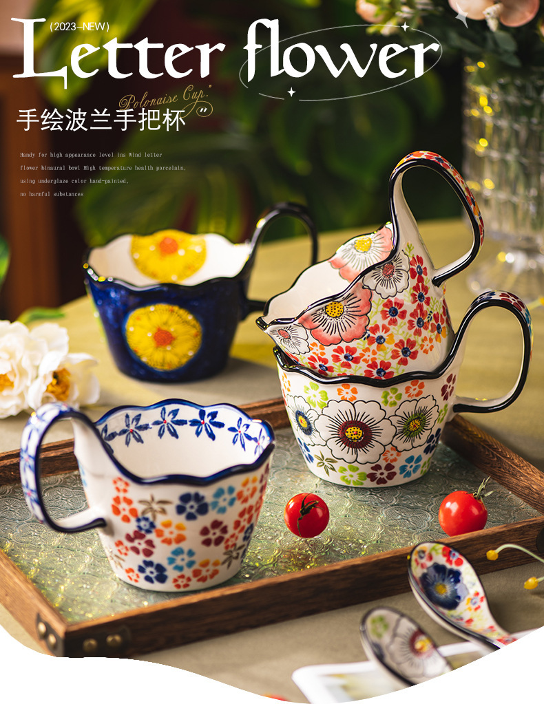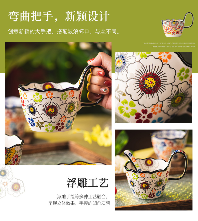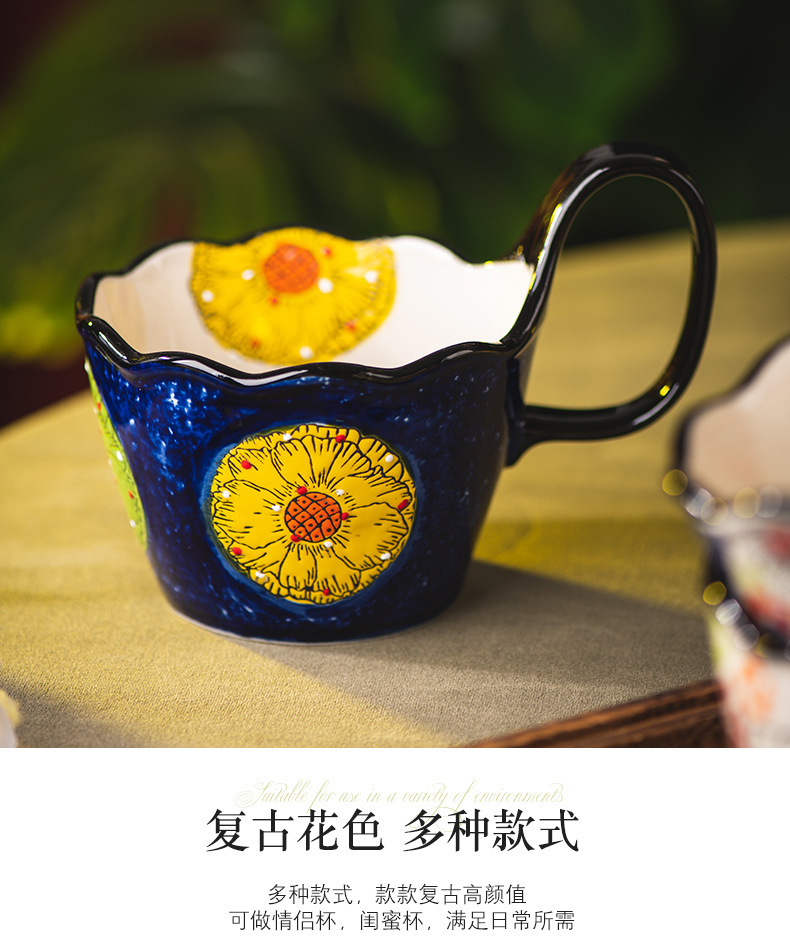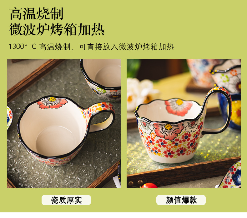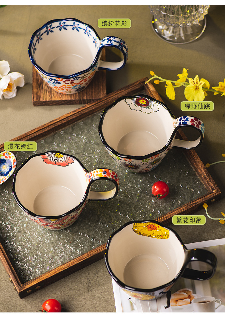 手繪杯陶瓷水杯家用早餐杯馬克杯辦公室杯子情侶杯咖啡杯