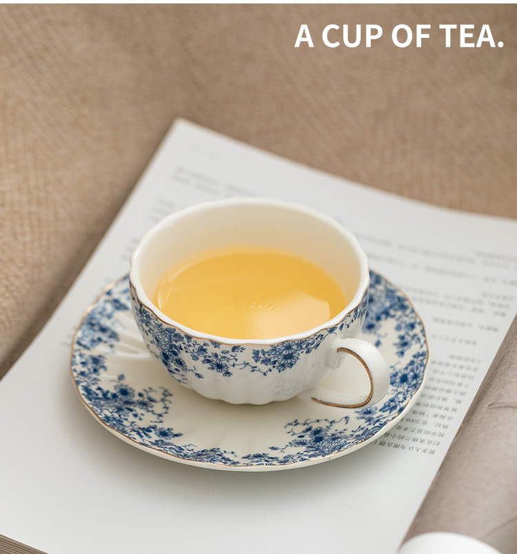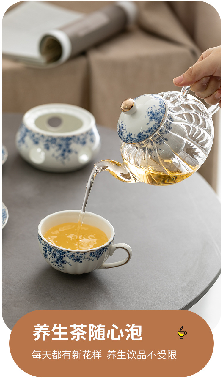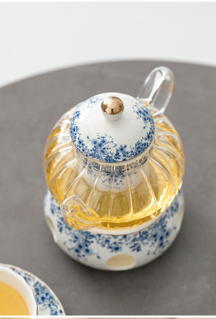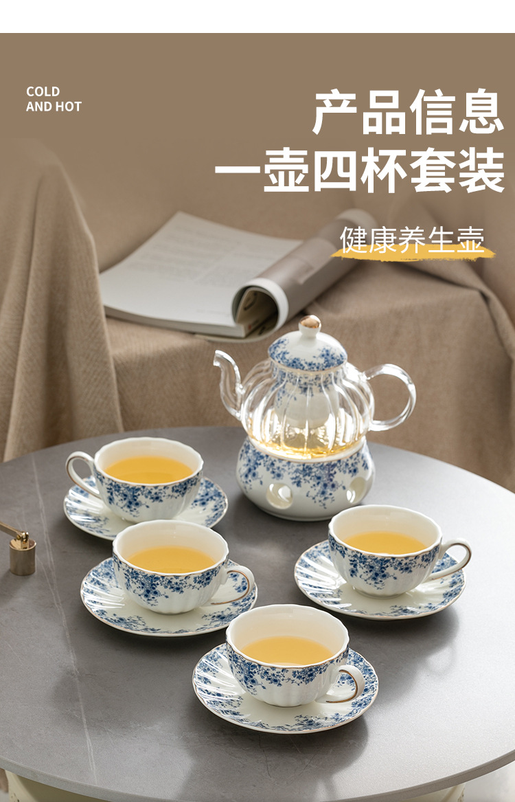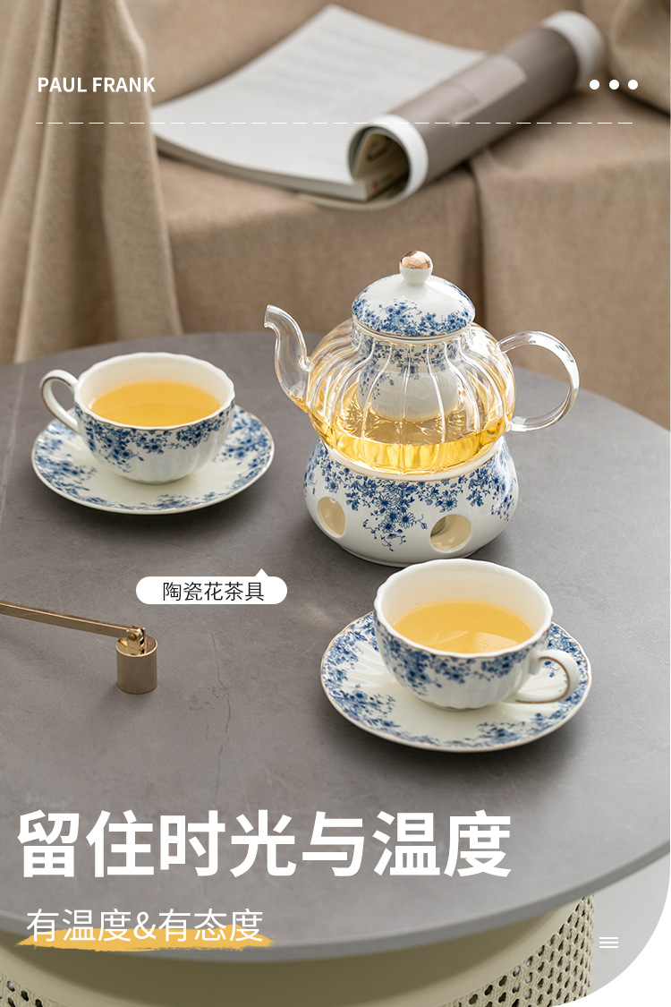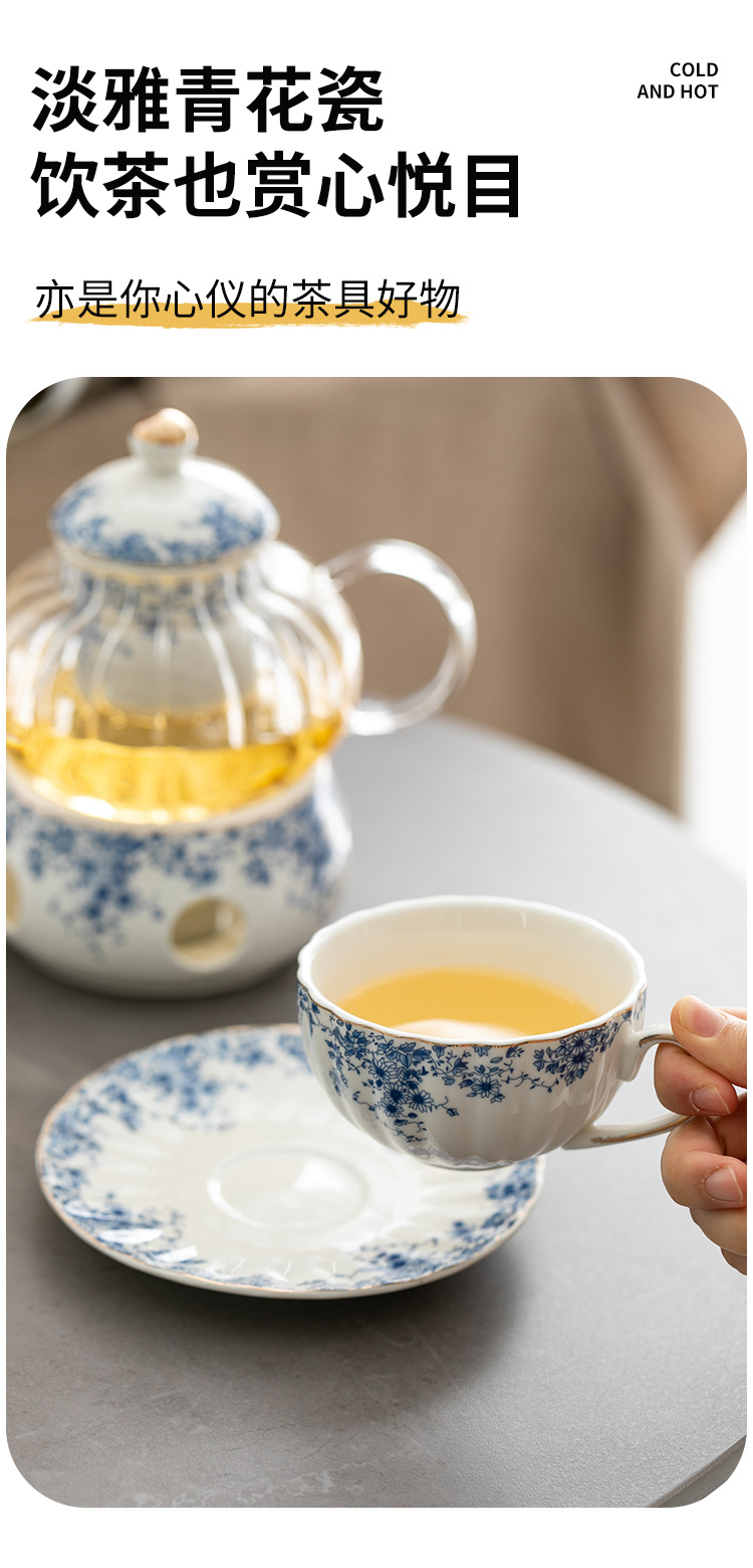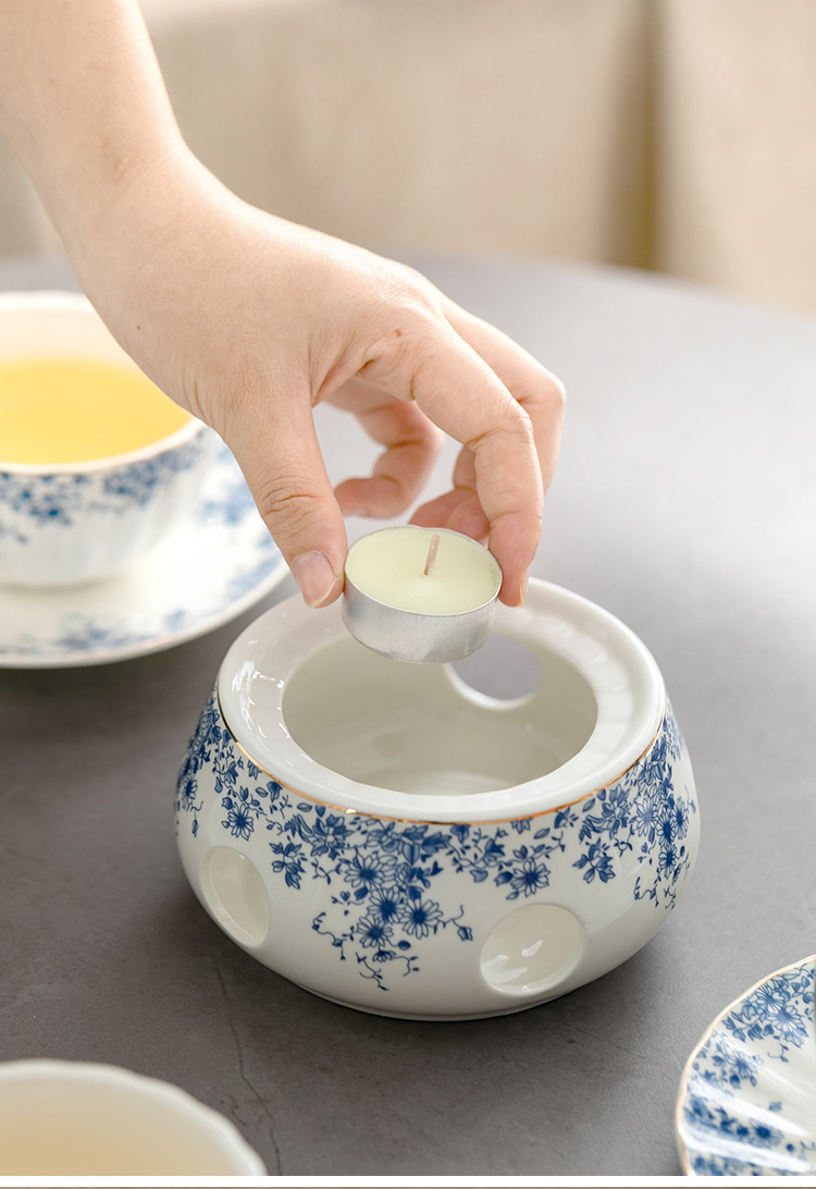 陶瓷復古下午茶茶具套裝 小藍花杯碟咖啡杯英式蠟燭加熱花茶壺