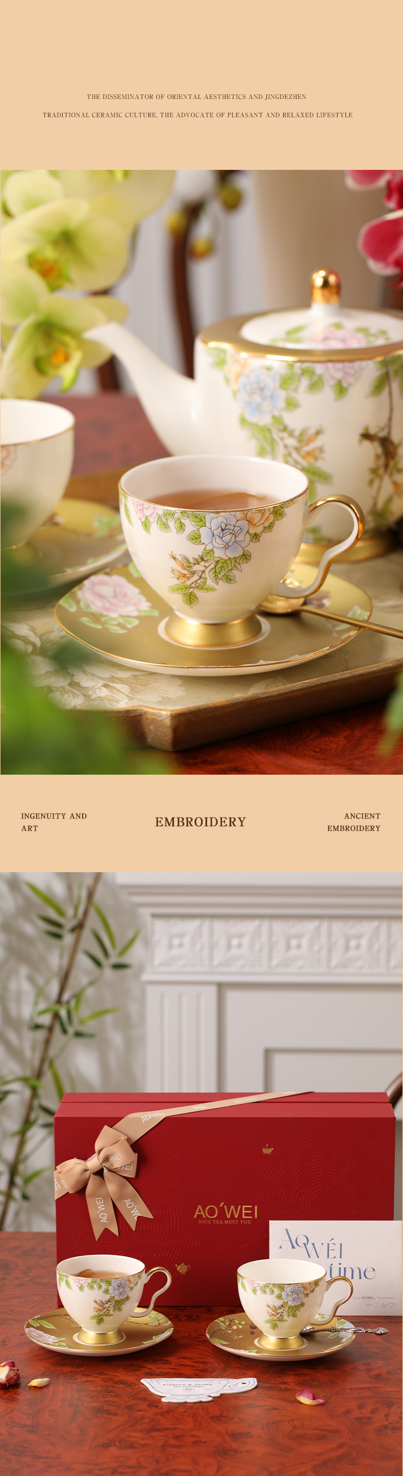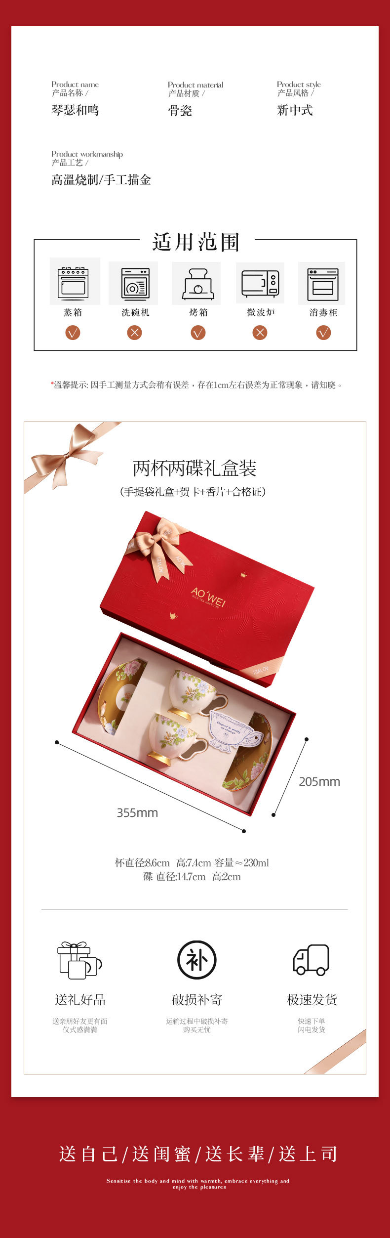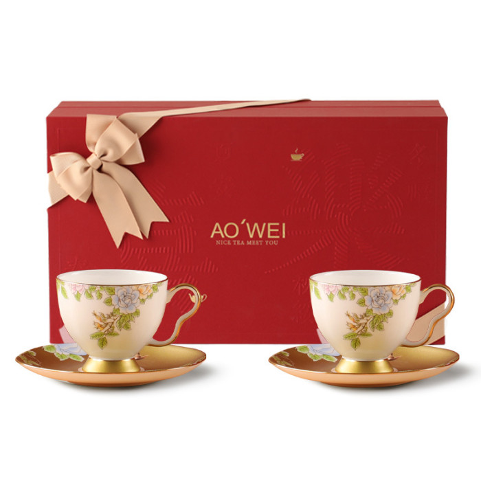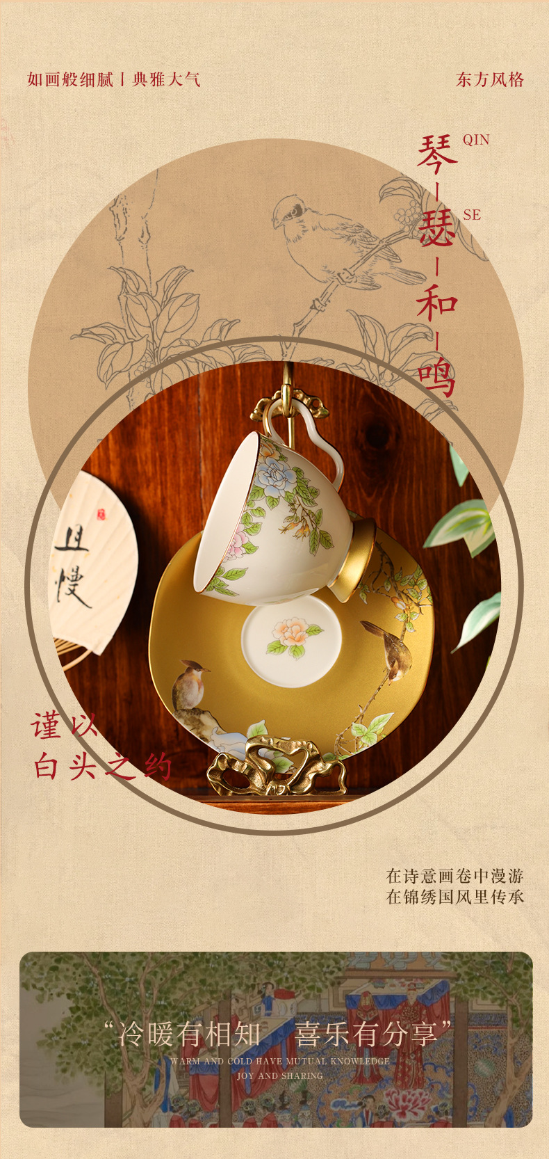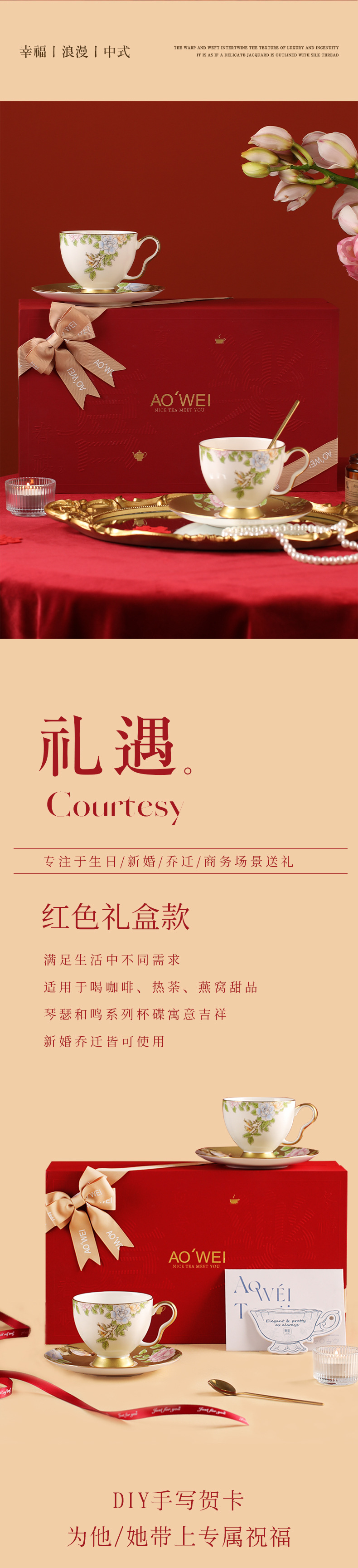 琴瑟和鳴景德鎮陶瓷咖啡杯碟禮品套裝高檔精緻禮盒裝結婚禮物