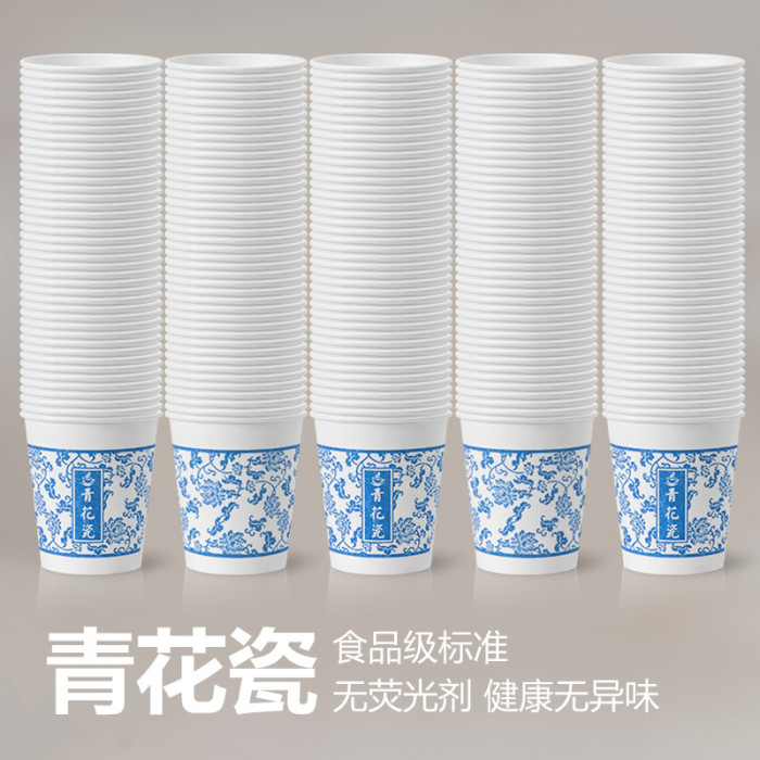 一次性杯子紙杯加厚耐用家用商用辦公杯咖啡杯青花瓷