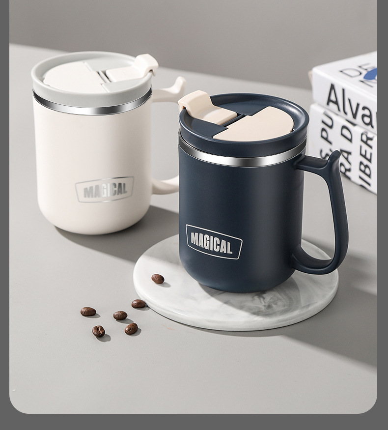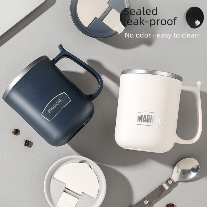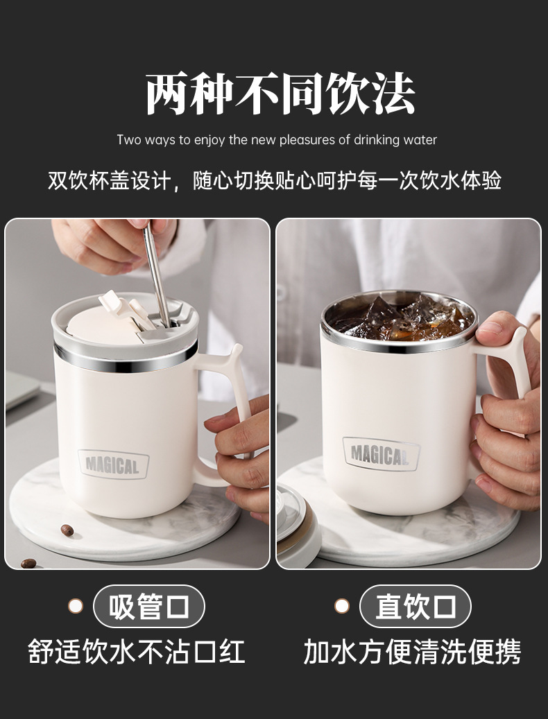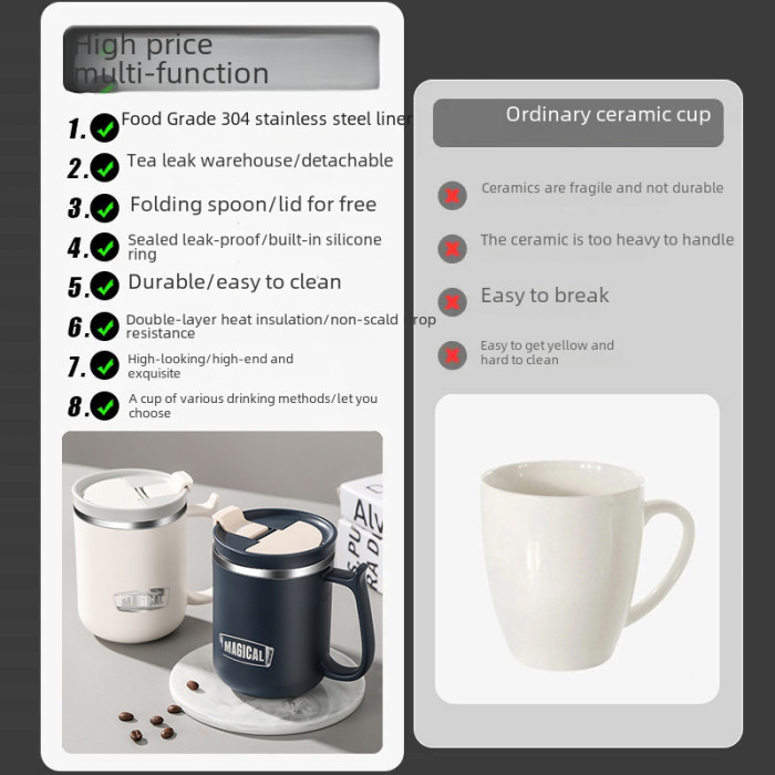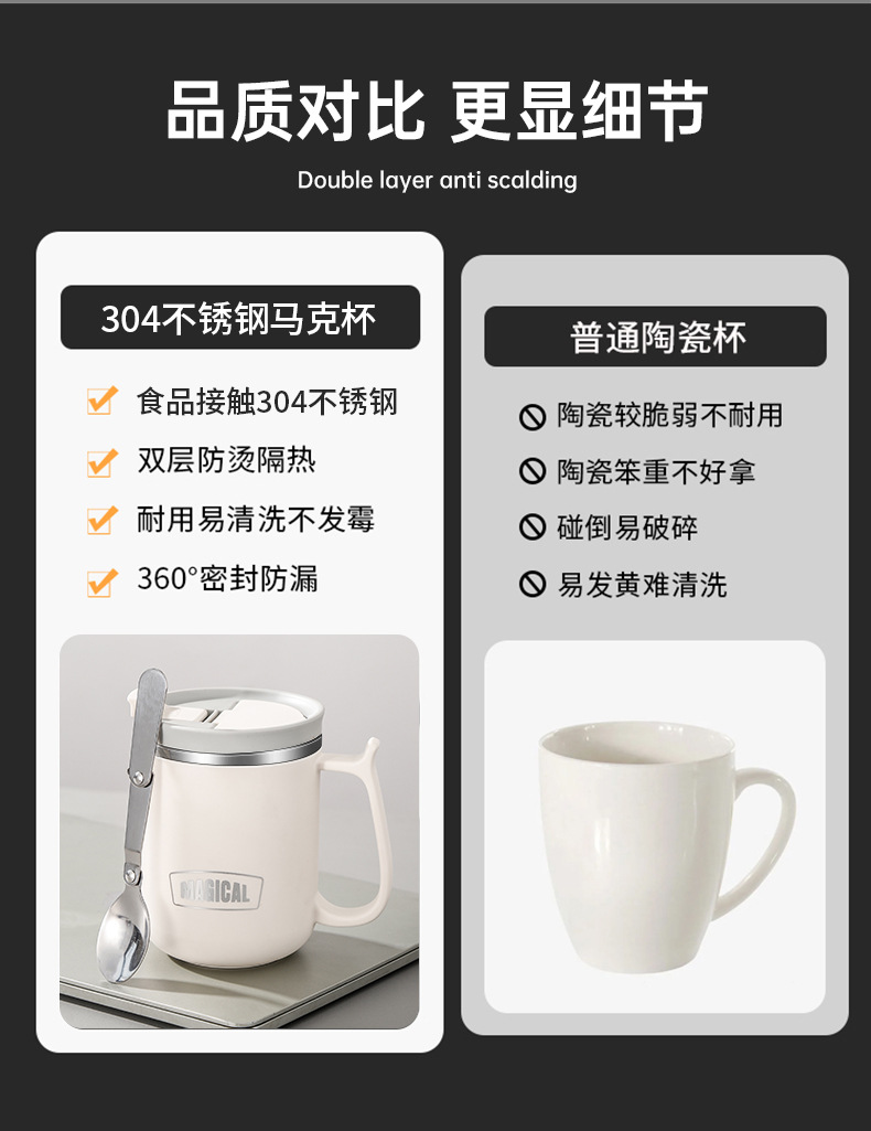 馬克杯高顔值辦公水杯杯子禮盒簡約帶蓋勺不鏽鋼可攜式咖啡杯伴手禮