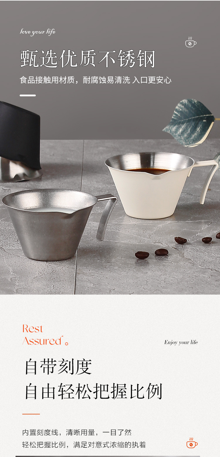 304不鏽鋼咖啡杯意式濃縮咖啡杯小量杯盎司刻度杯100ml萃取杯