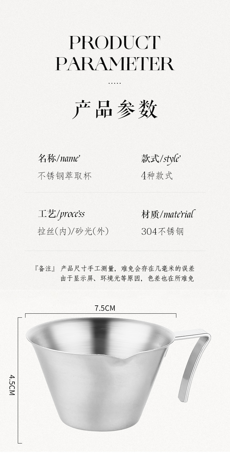 | 顔色 | 【扁柄】304萃取盃 帶漏嘴 (本色)兩個裝 |