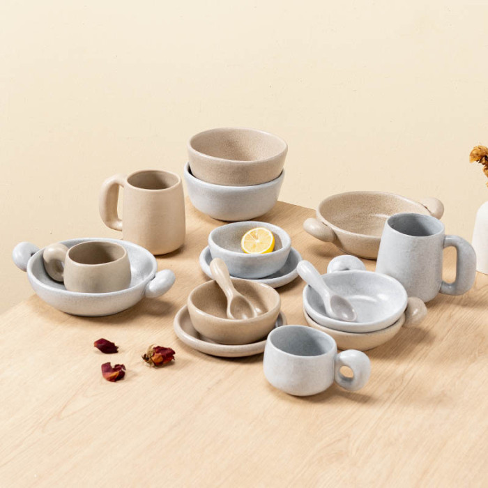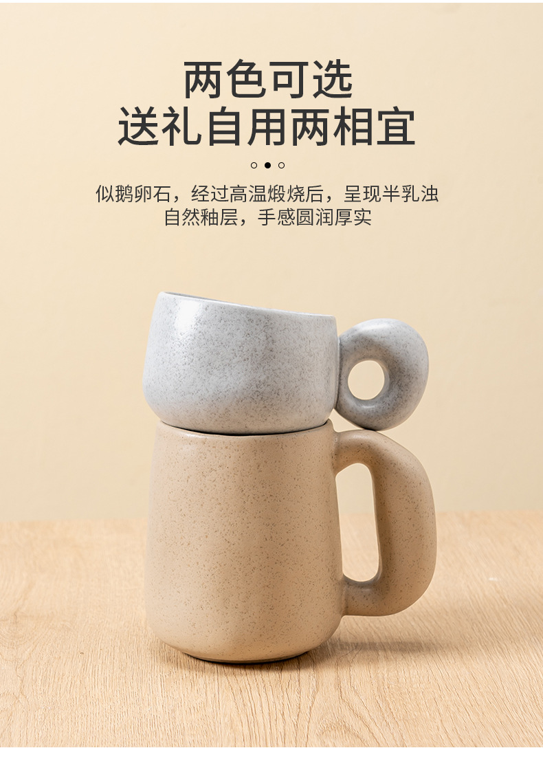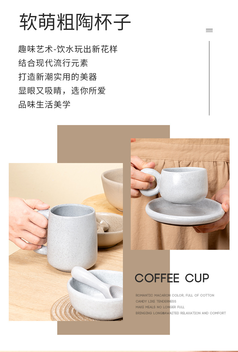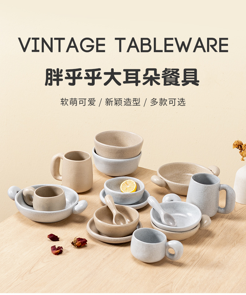 日式粗陶餐具套裝大耳朵可愛咖啡杯馬克杯家用飯碗湯碗雙耳沙拉碗