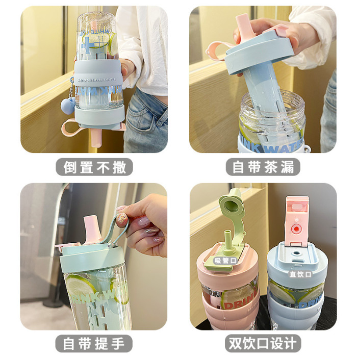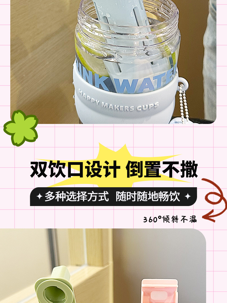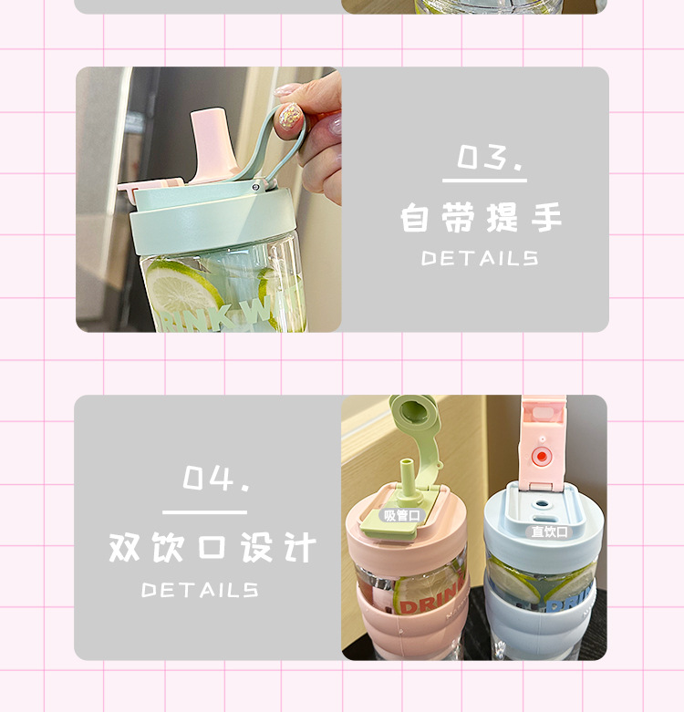 水杯女生夏天2024新款高顔值塑膠瓶大容量耐高溫可攜式少女吸管杯子
