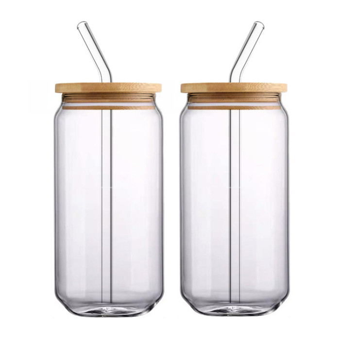ins杯玻璃水杯易拉罐奶茶咖啡吸管杯水瓶梅森杯熱轉印帶蓋大容量