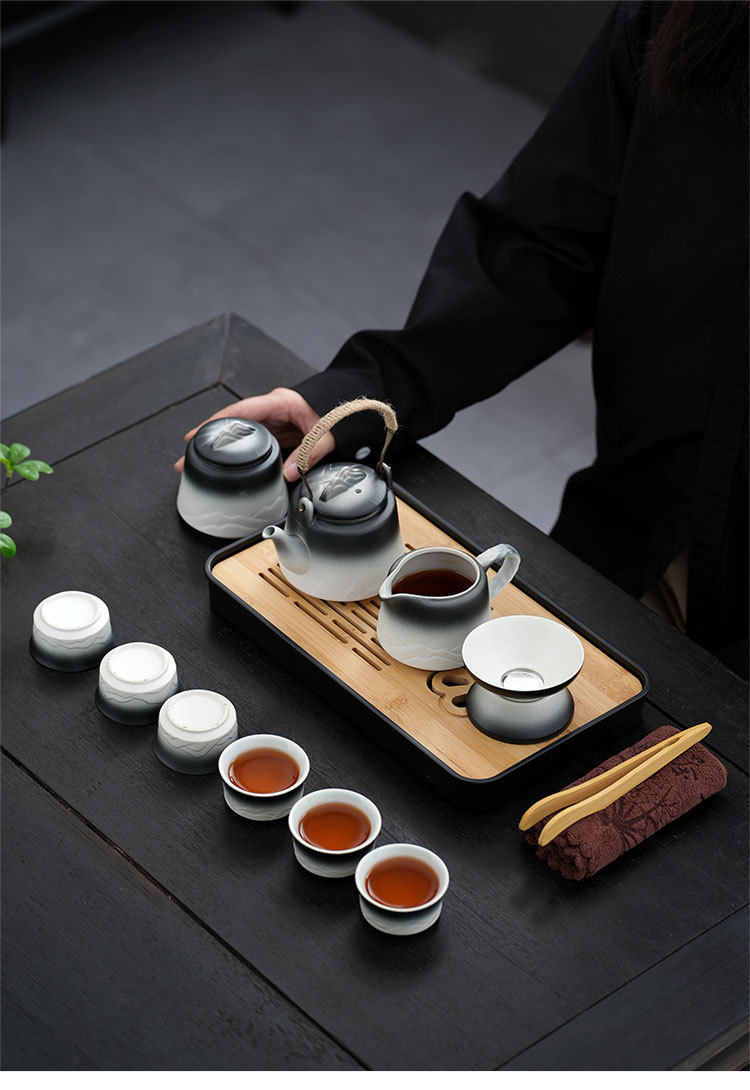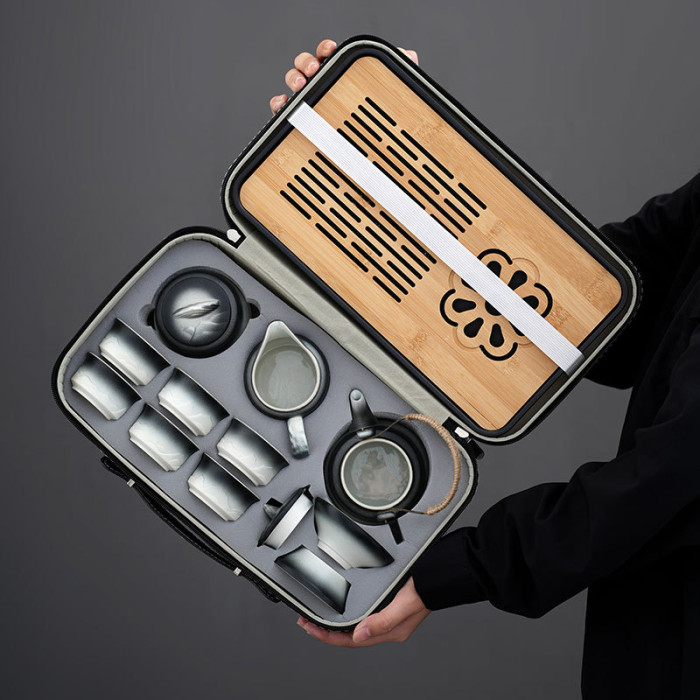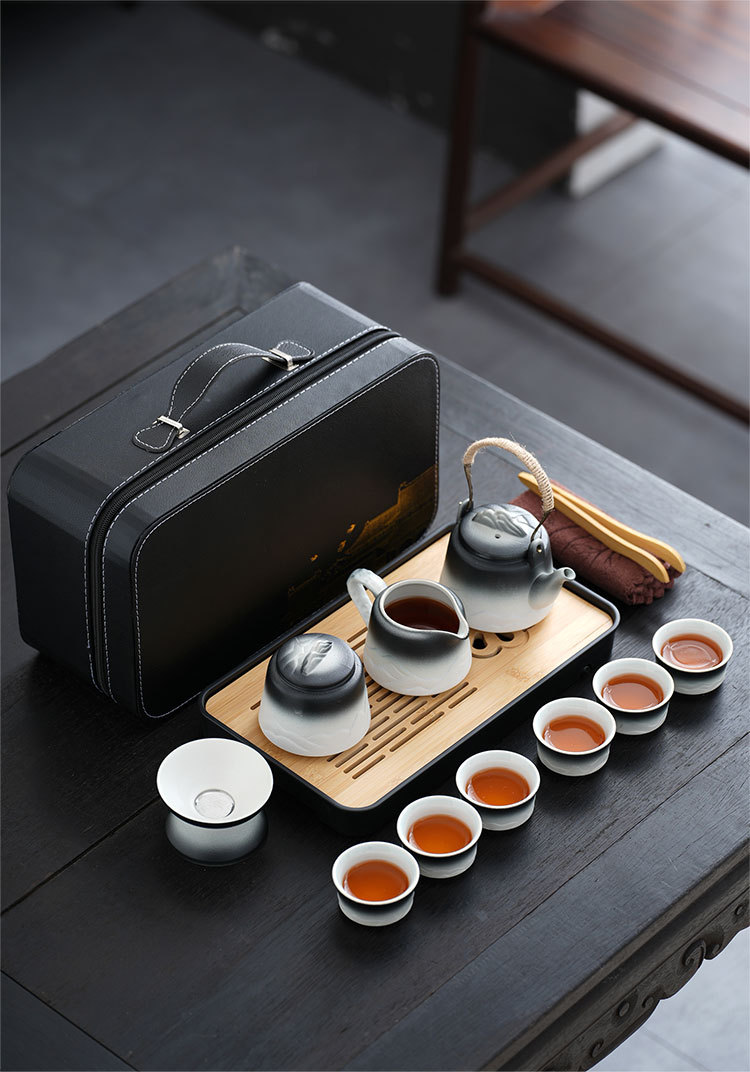 車用旅行茶具套裝家用簡約泡茶壺陶瓷茶杯戶外露營茶盤可攜式套裝