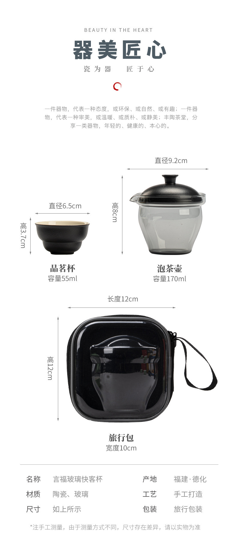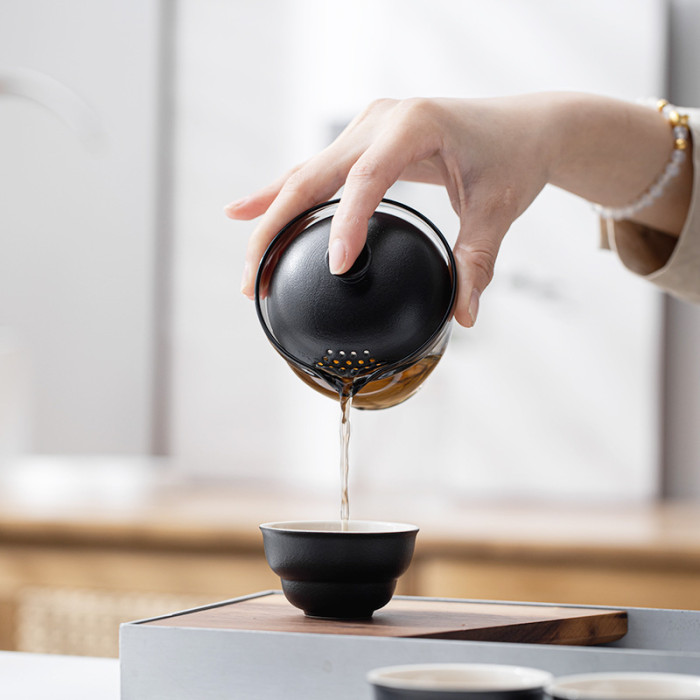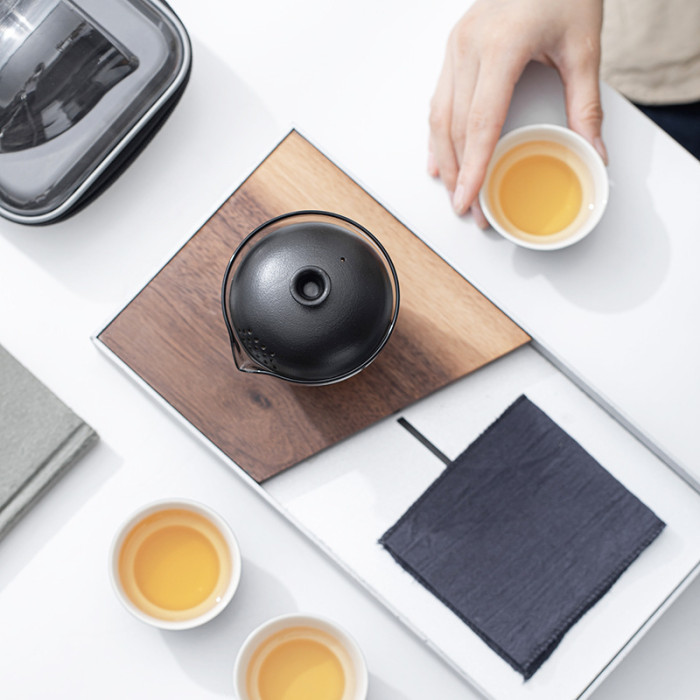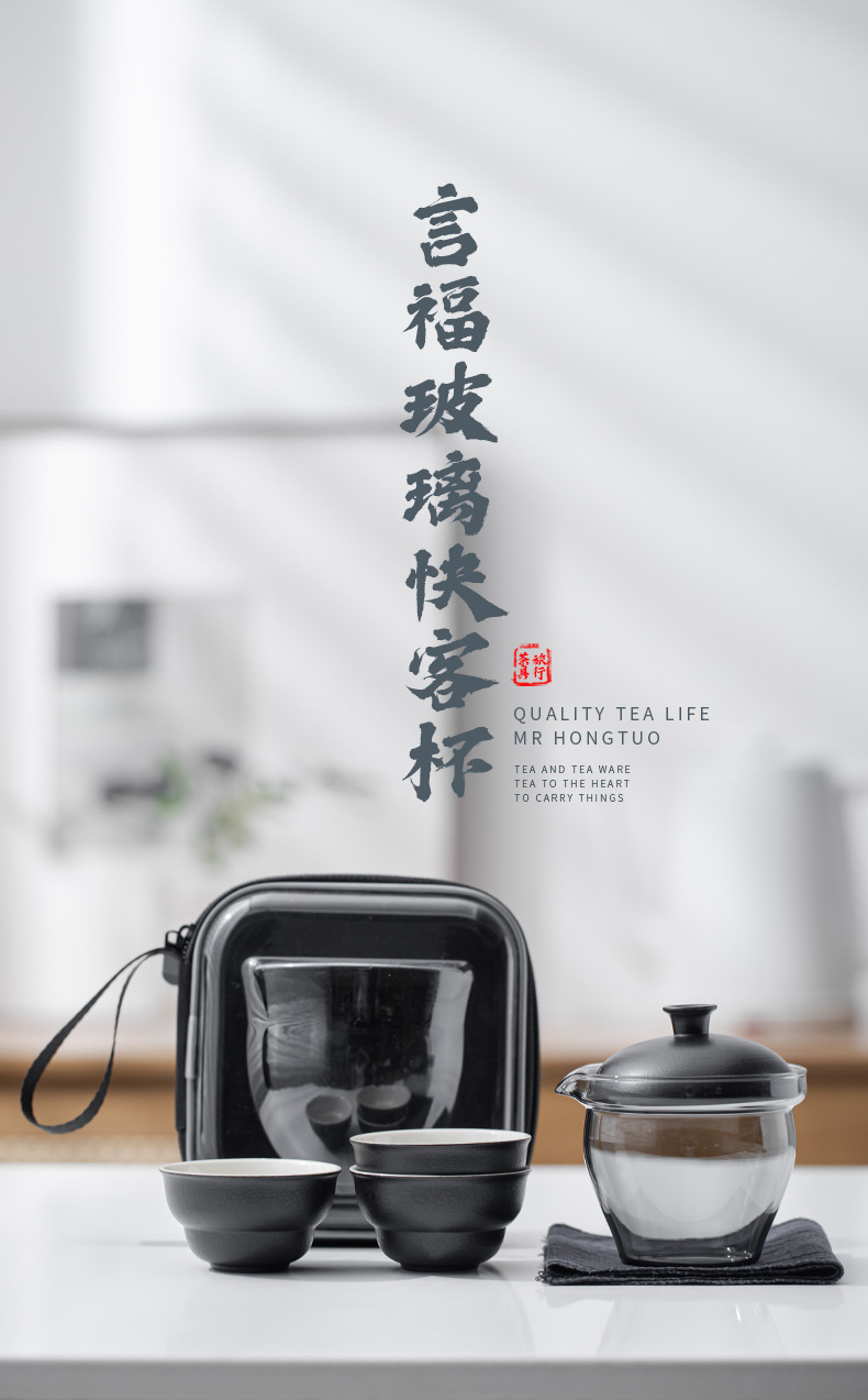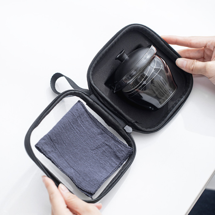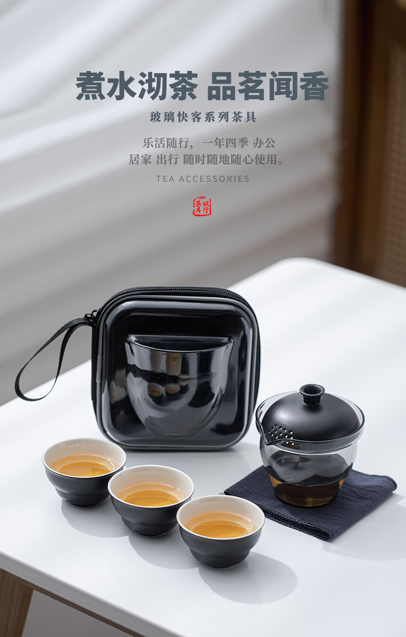 可攜式玻璃旅行茶具套裝一壺三杯戶外露營個人專用簡約泡茶壺茶杯