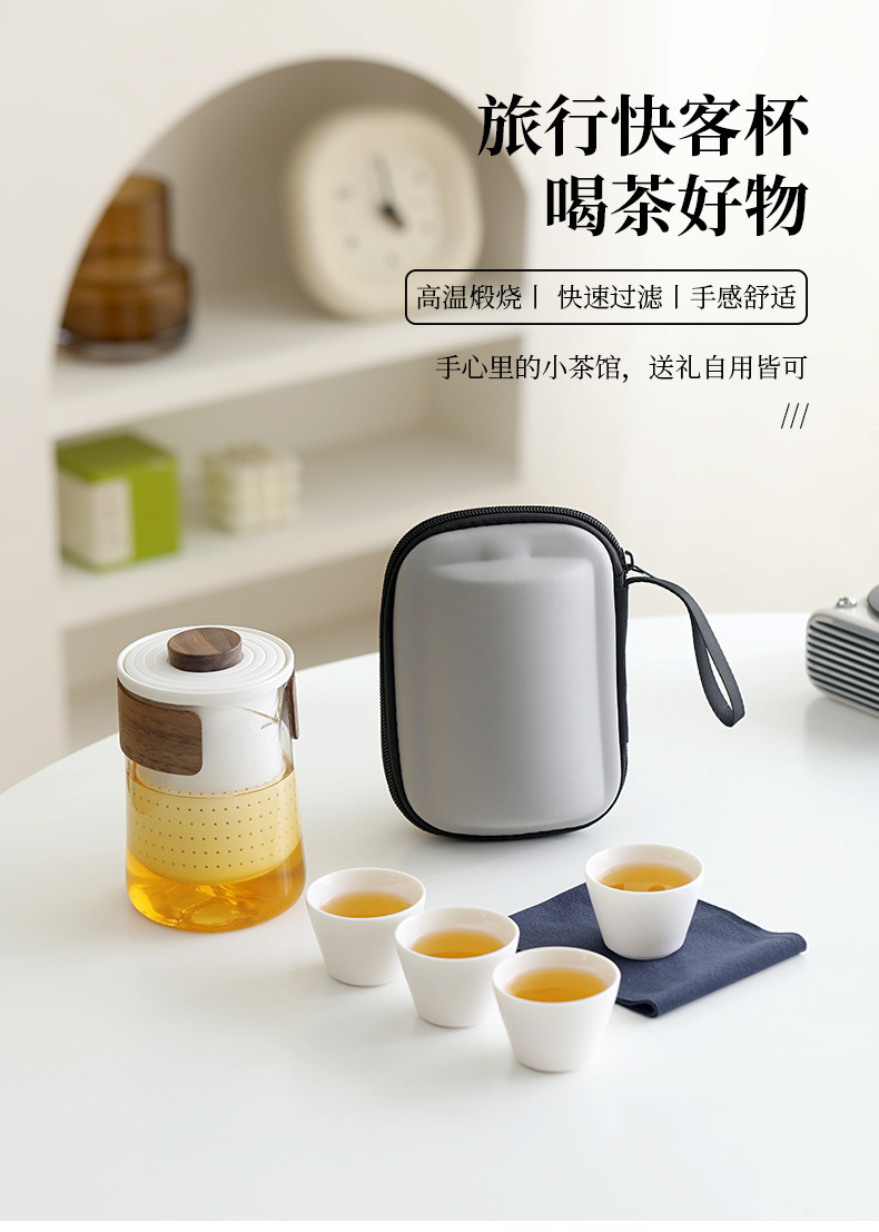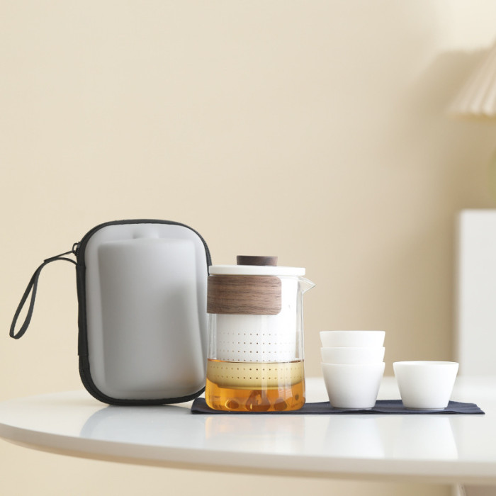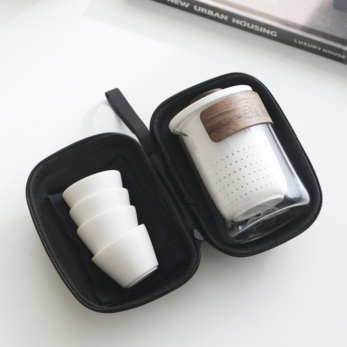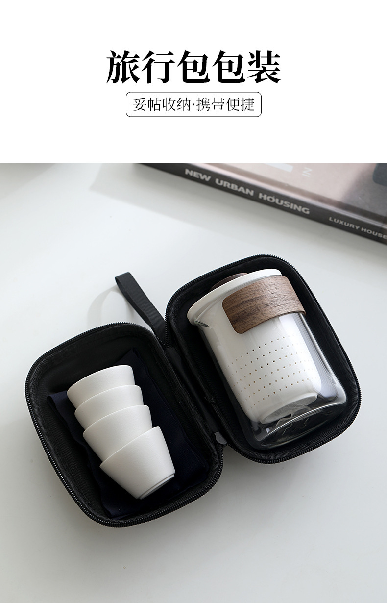可攜式玻璃旅行茶具小套裝一壺四杯戶外隨身泡茶功夫茶杯禮品