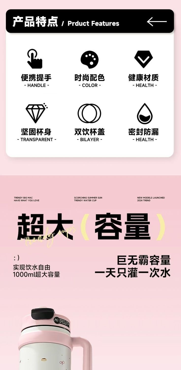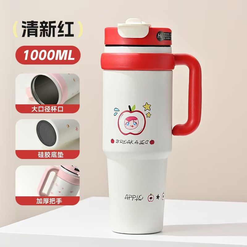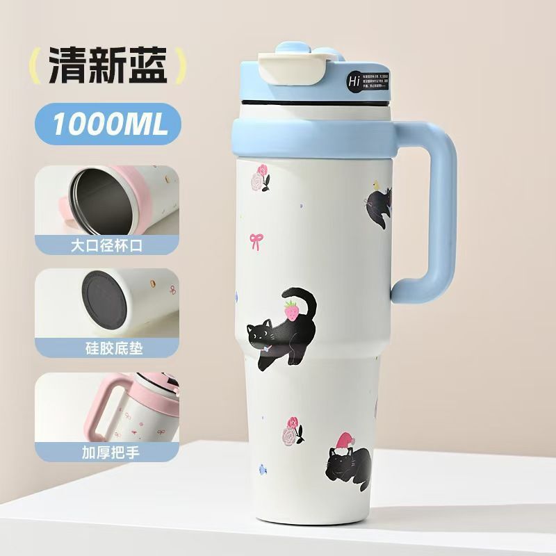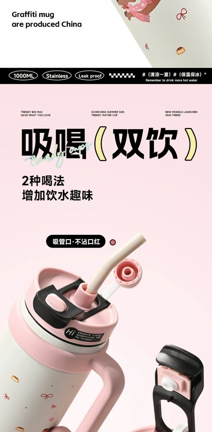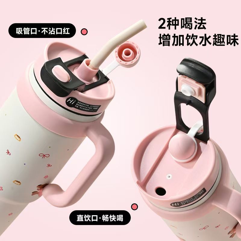 2025新款高顔值巨無霸保溫杯大容量冰霸杯可愛圖案水杯加厚吸管杯