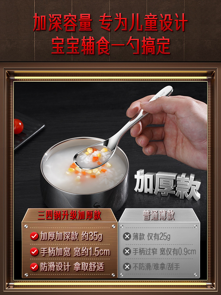 三四鋼®飯勺寶寶家用加深元寶餐勺 小勺子316不鏽鋼兒童輔食湯勺