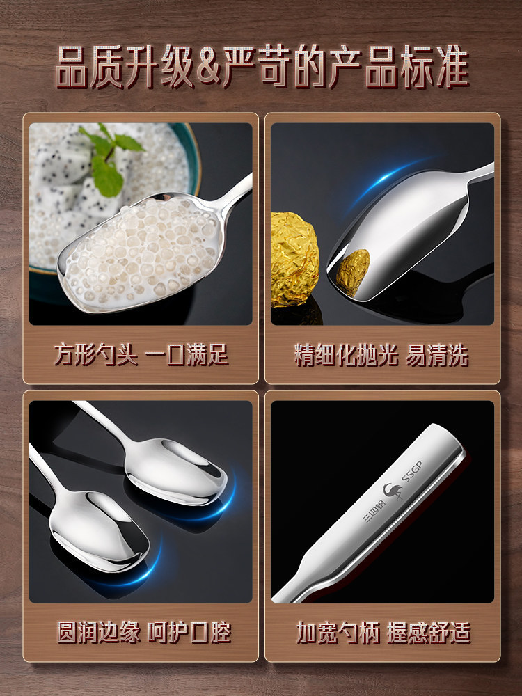 三四鋼® 湯匙食品接觸級加厚調羹勺 西瓜勺316L不鏽鋼甜品勺子