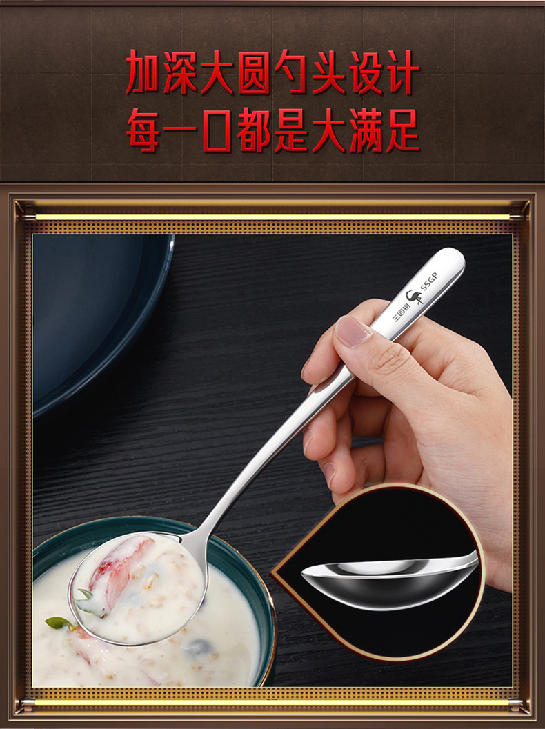 三四鋼®勺子不鏽鋼316食品接觸級咖啡勺 湯匙加厚長柄湯勺飯勺