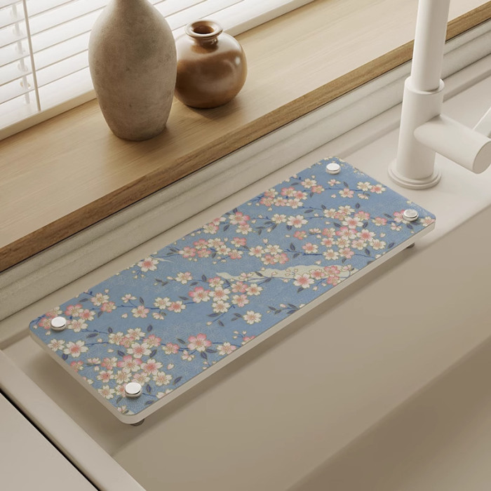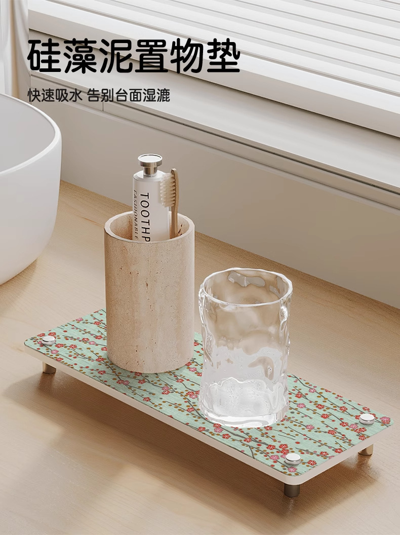 日式櫻花矽藻泥洗手台墊台面吸水墊廚房托盤桌面瀝水置物架