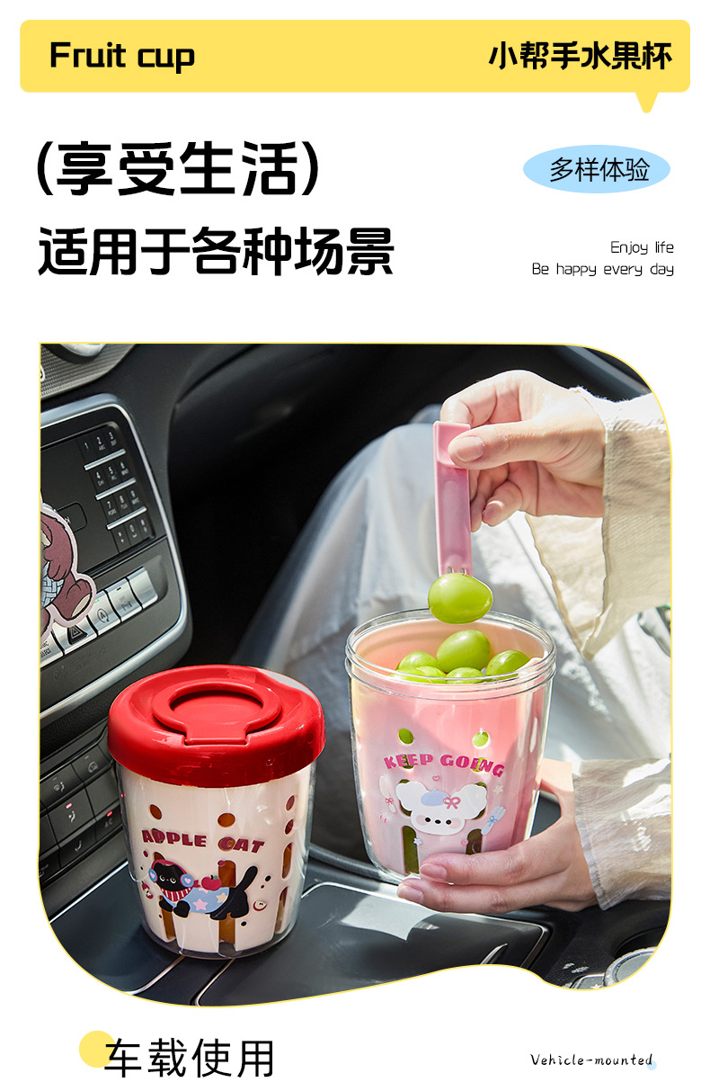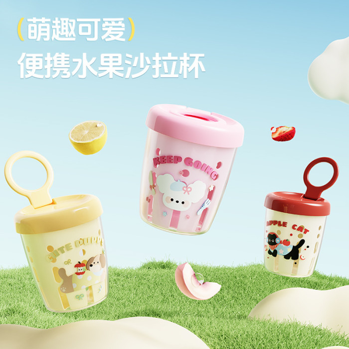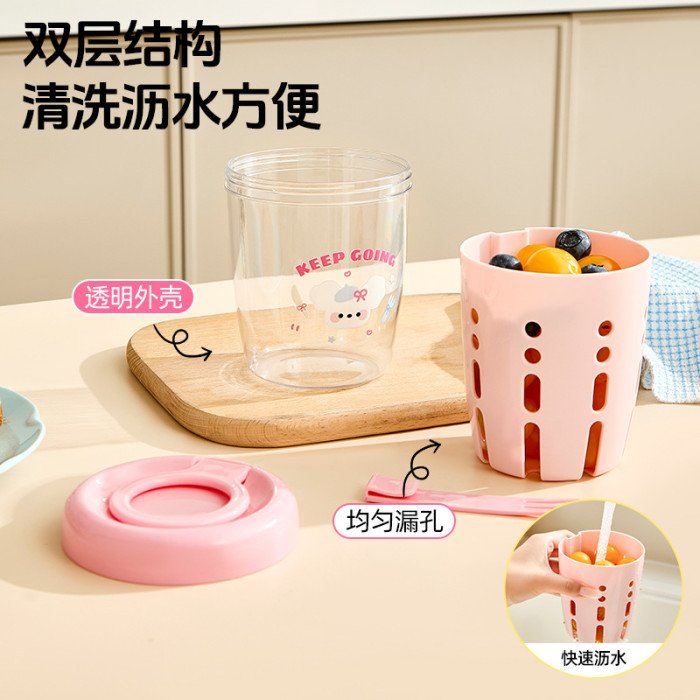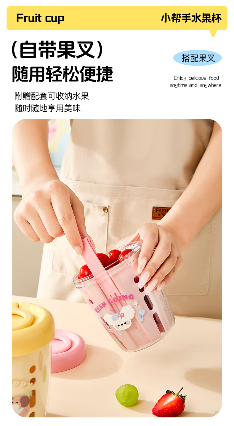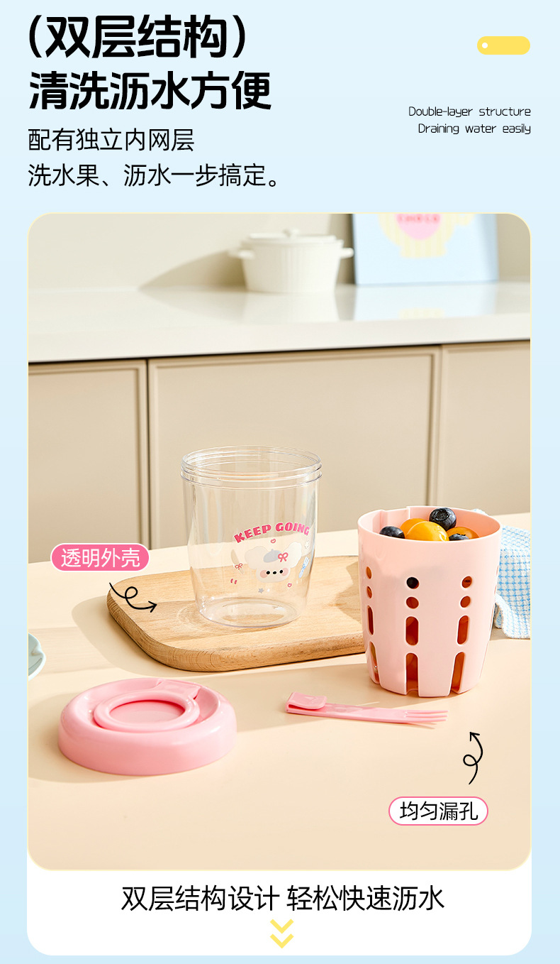 卡通網紅可攜式水果杯帶叉子裝瀝水外出便當盒上班族沙拉保鮮盒子