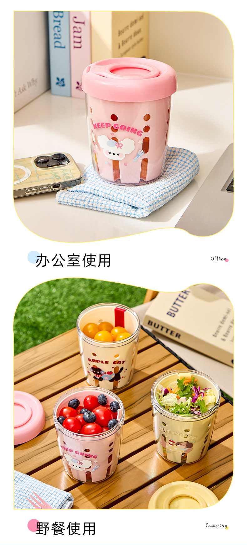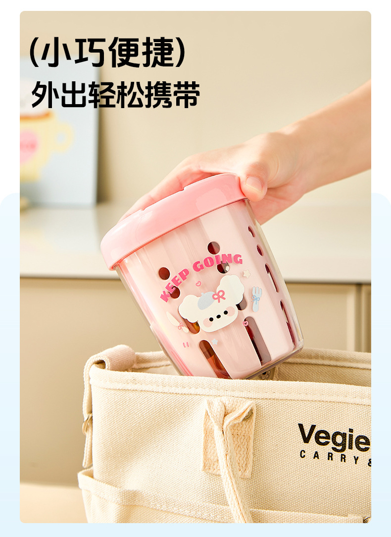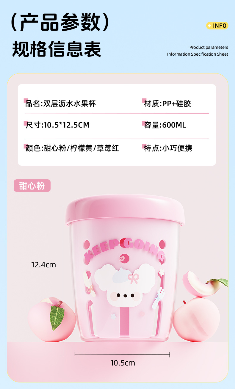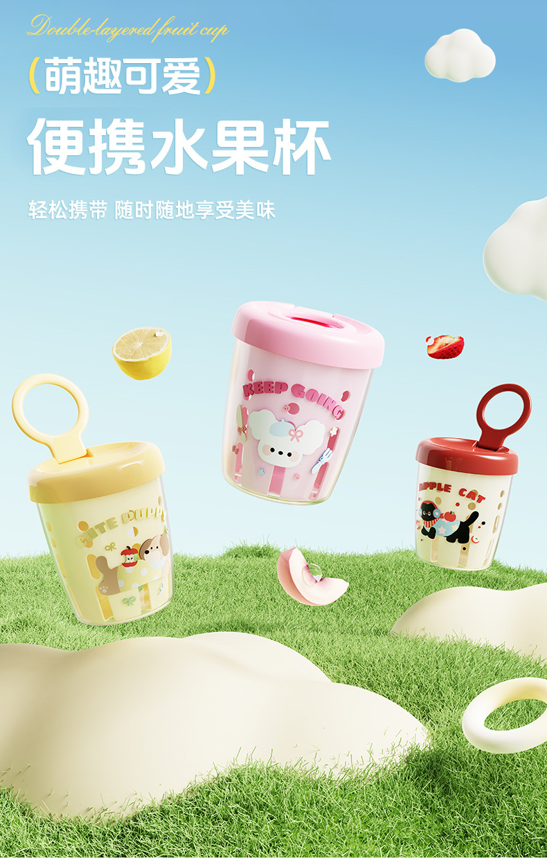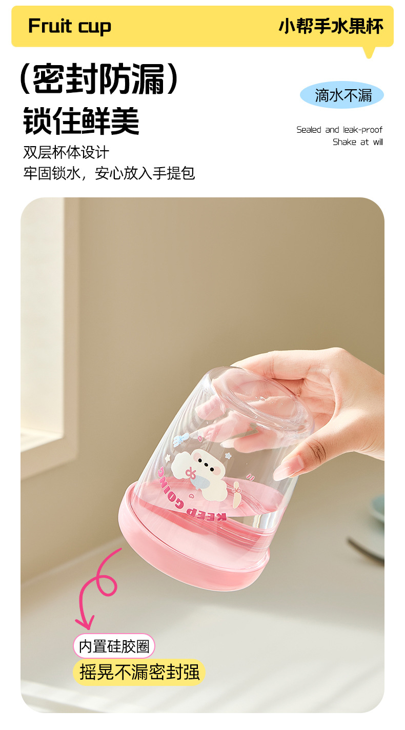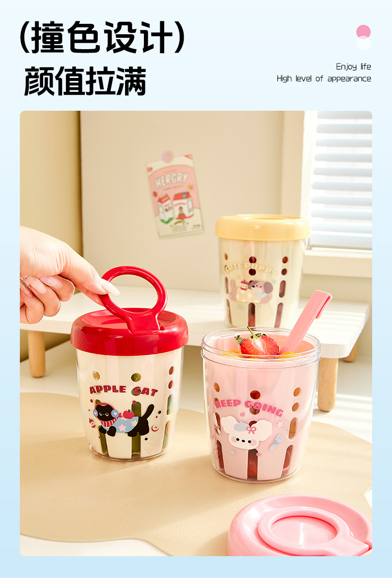 馬卡龍水果杯早餐沙拉杯可攜式外帶野餐帶叉子帶蓋雙層瀝水杯水果杯