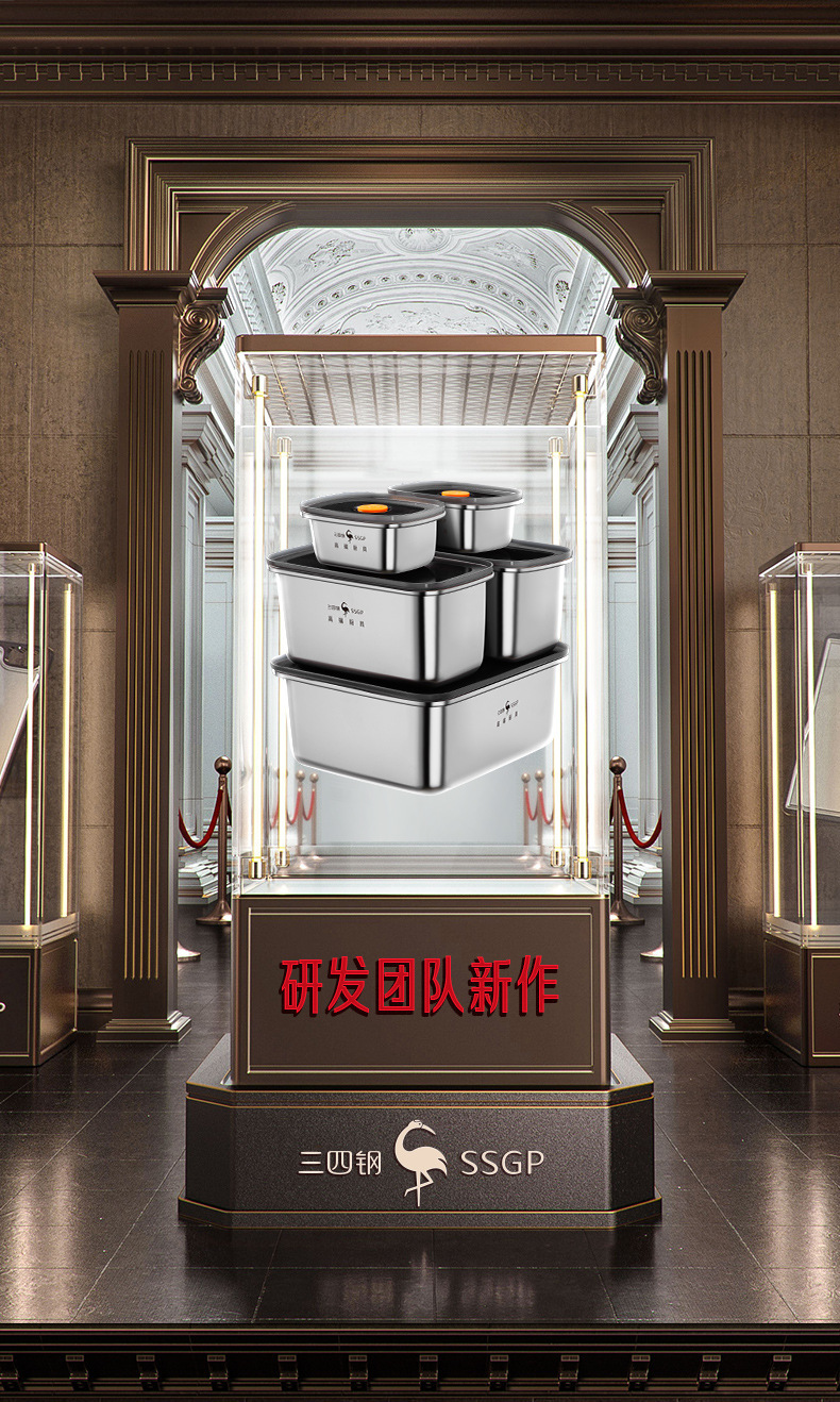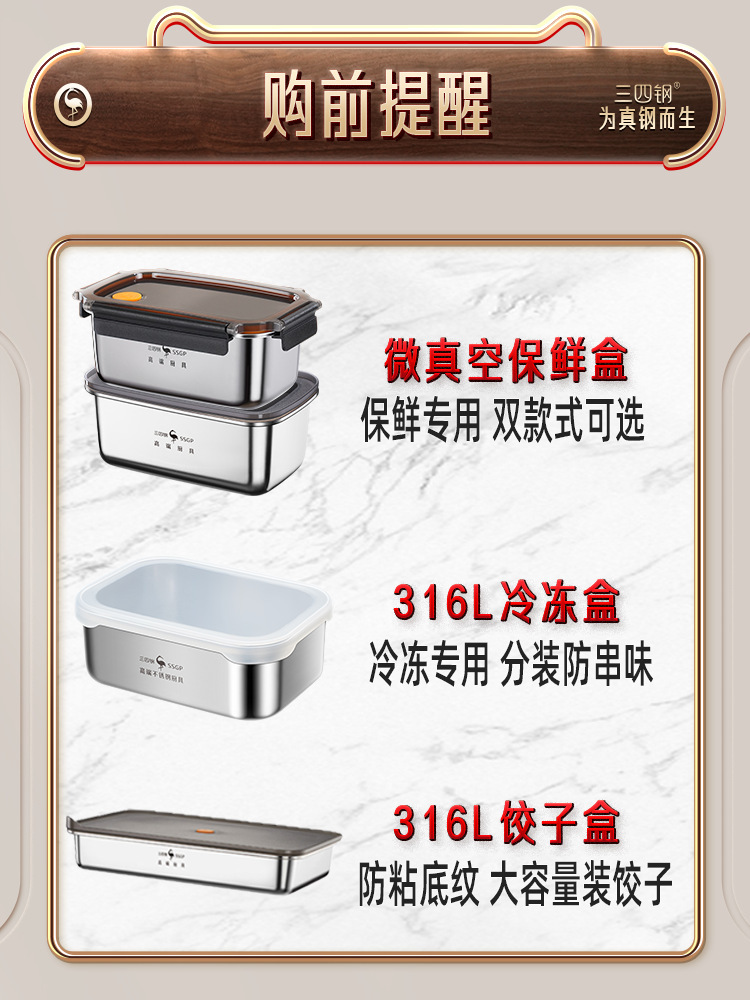 三四鋼®商用保鮮盒不鏽鋼冰箱收納盒 家用飯盒廚房密封盒冷凍盒