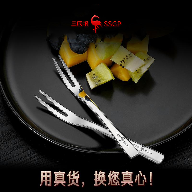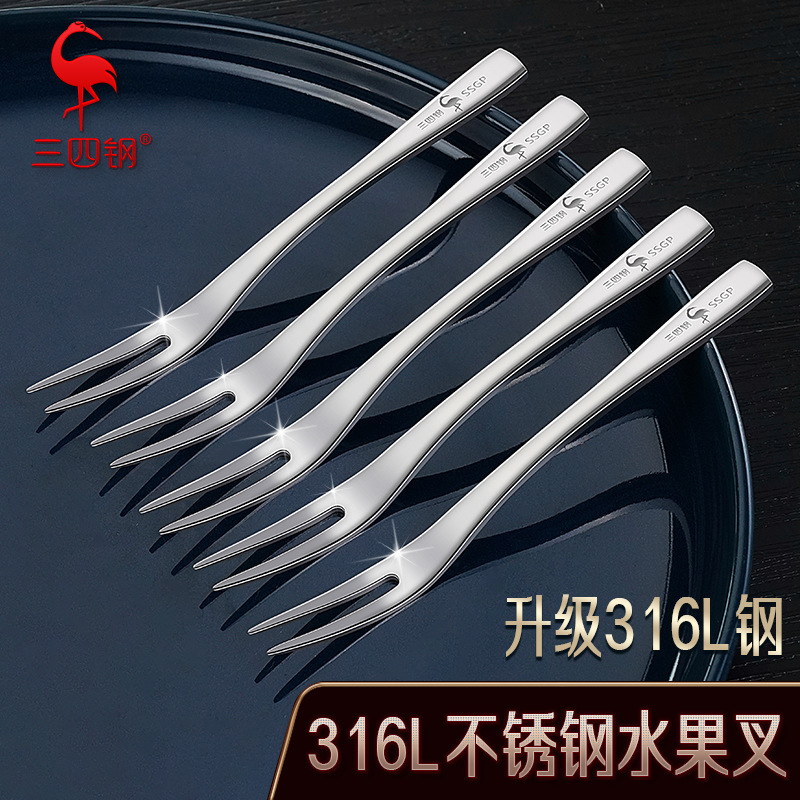 三四鋼®蛋糕叉子高級感家用加厚果簽甜品叉套裝316L不鏽鋼水果叉