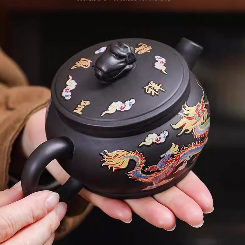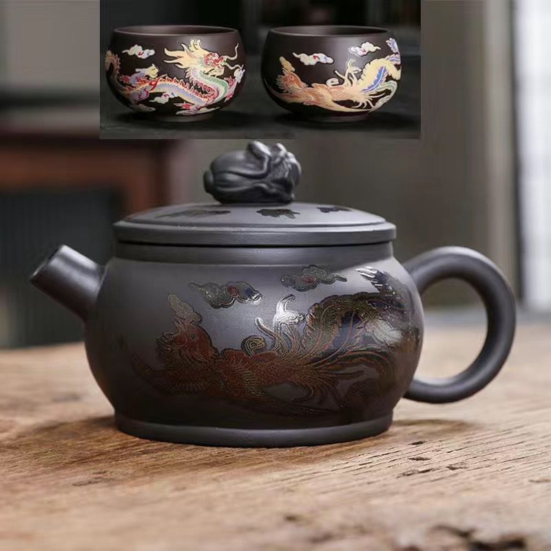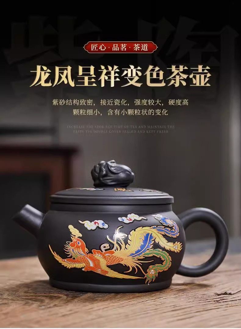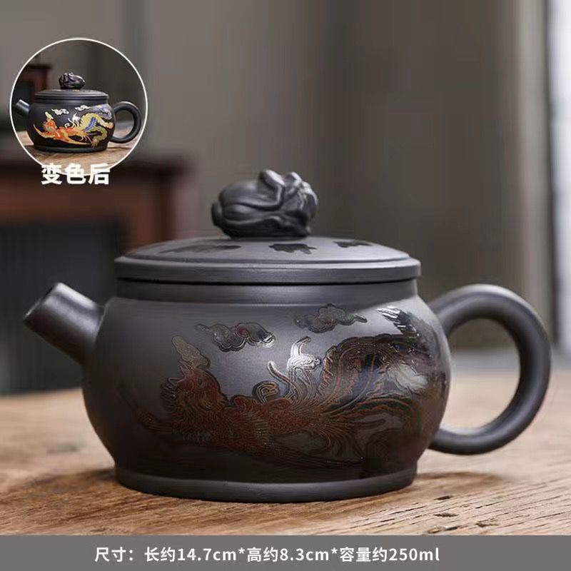 原礦紫陶紫砂壺鳳鳴壺龍鳳變色茶壺單壺西施壺功夫茶具家用泡茶壺
