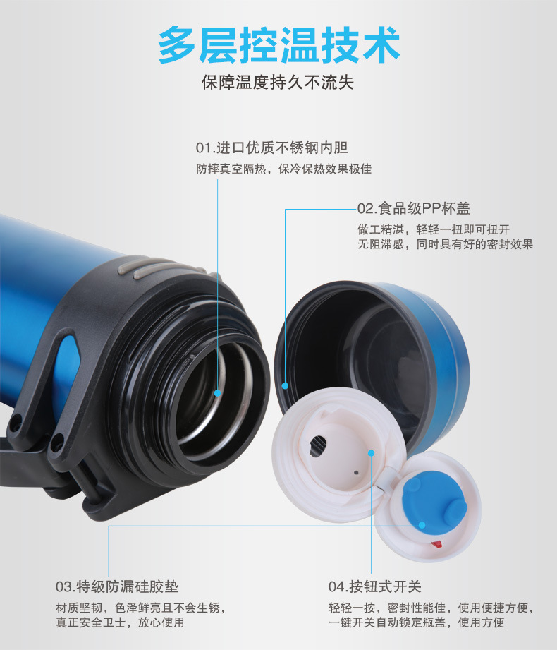不鏽鋼大容量旅行壺便捷戶外登山水壺運動家用真空保溫杯禮品