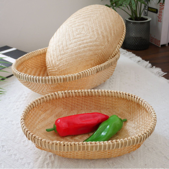 竹編托盤餐具瀝水籃子曬菜神器手工製品收納筐農家筲簸箕