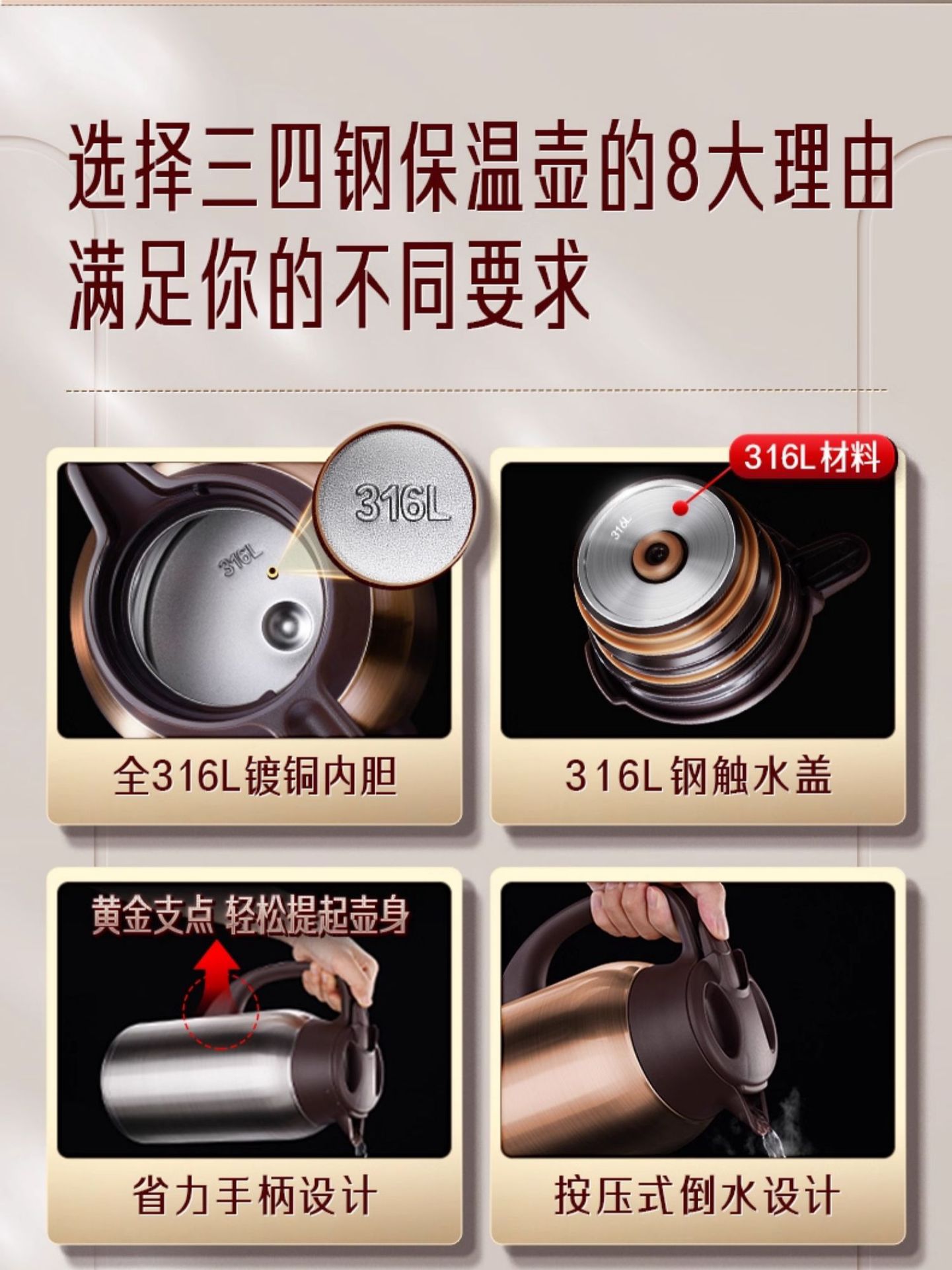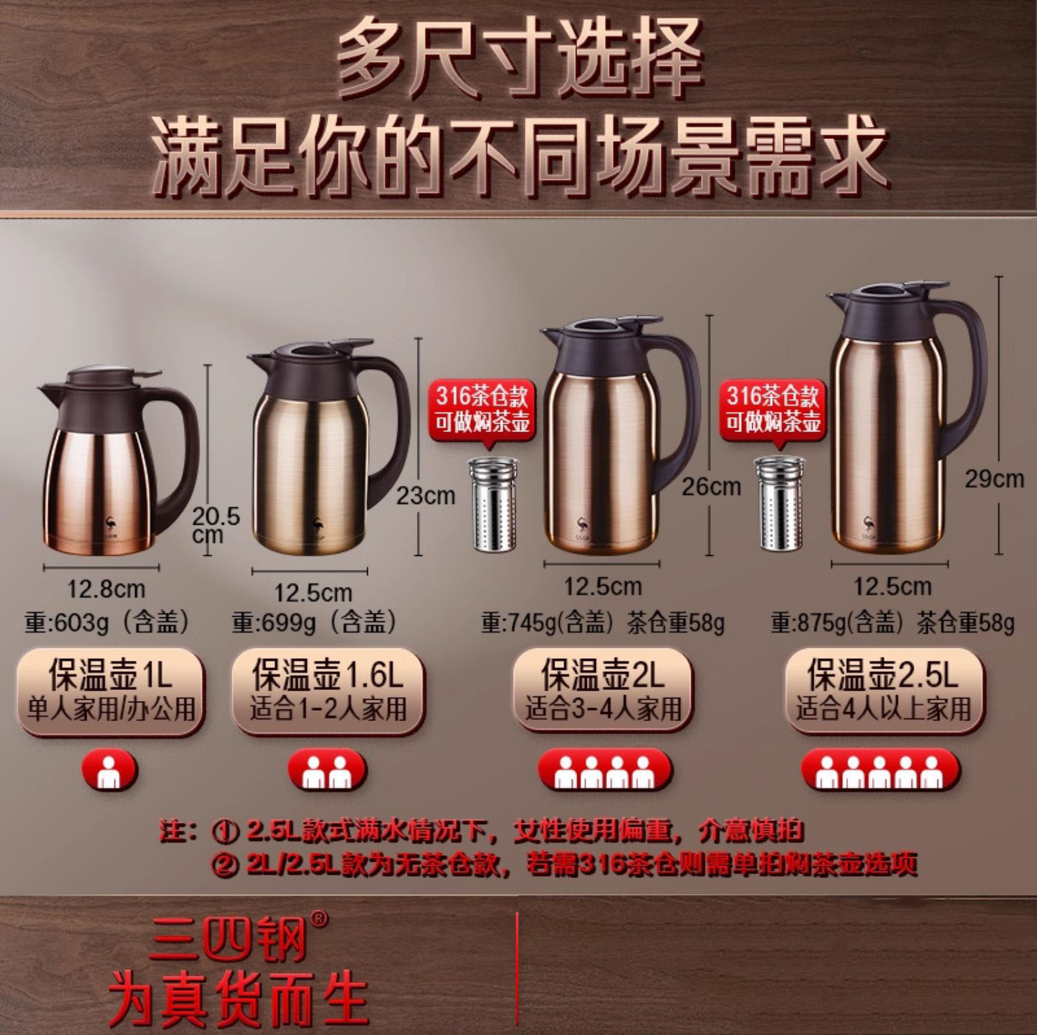 三四鋼®抖音爆款保溫壺不鏽鋼316L暖水壺2L大容量燜茶壺熱水瓶