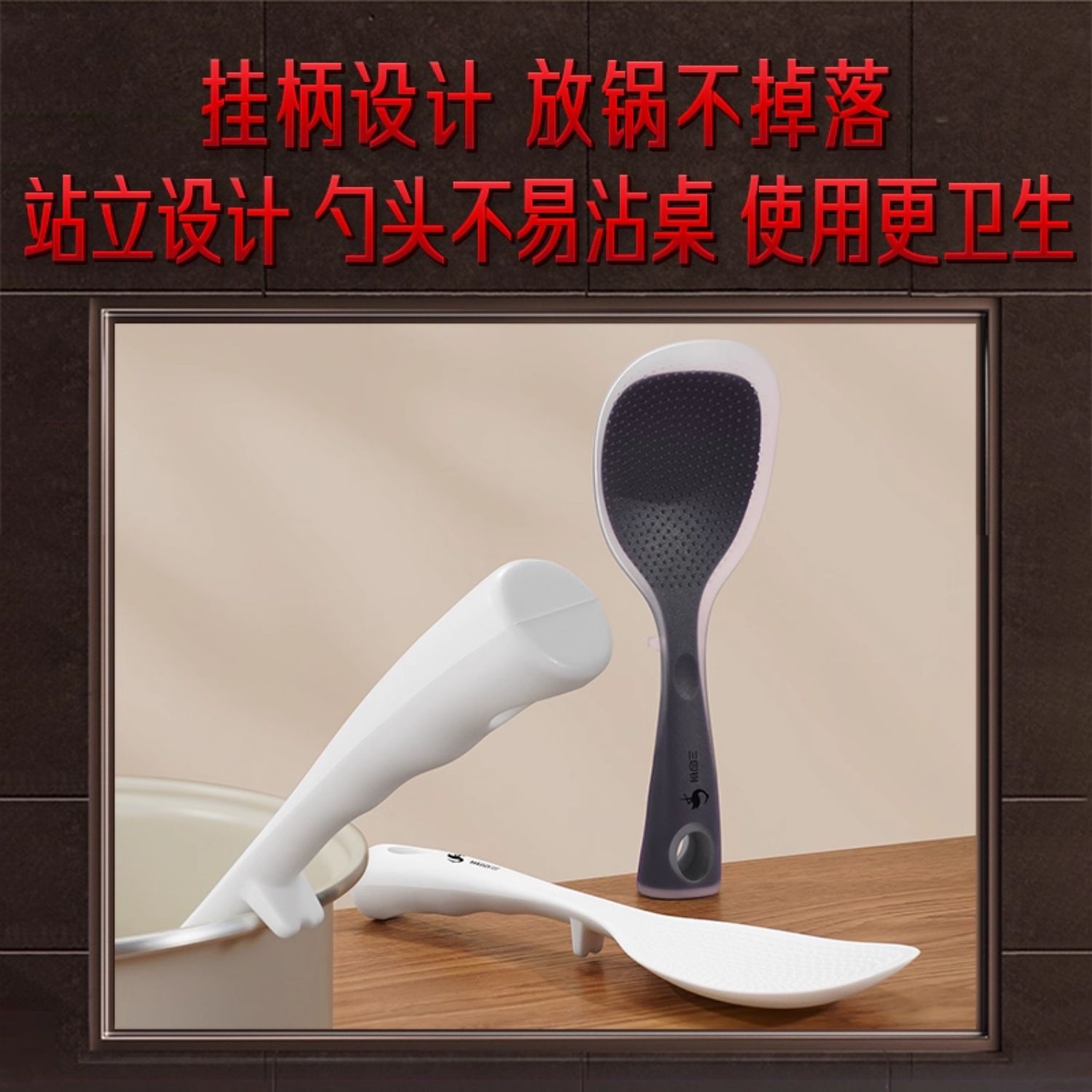 三四鋼®不沾飯勺可立式家用盛飯電飯煲不沾米飯電飯鍋矽膠勺子