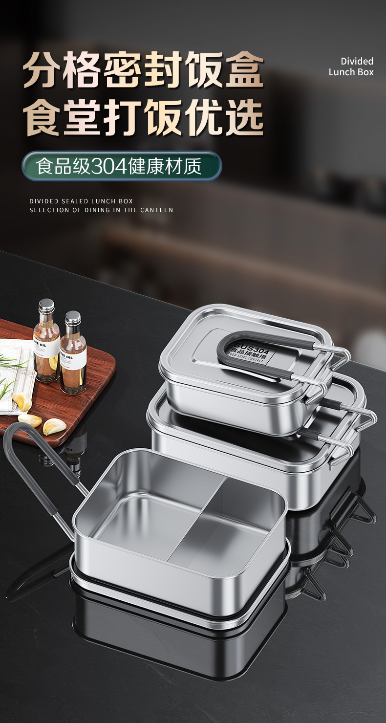 德國飯盒食品級304不鏽鋼蒸飯盒上班族學生食堂老式分格打飯餐盒