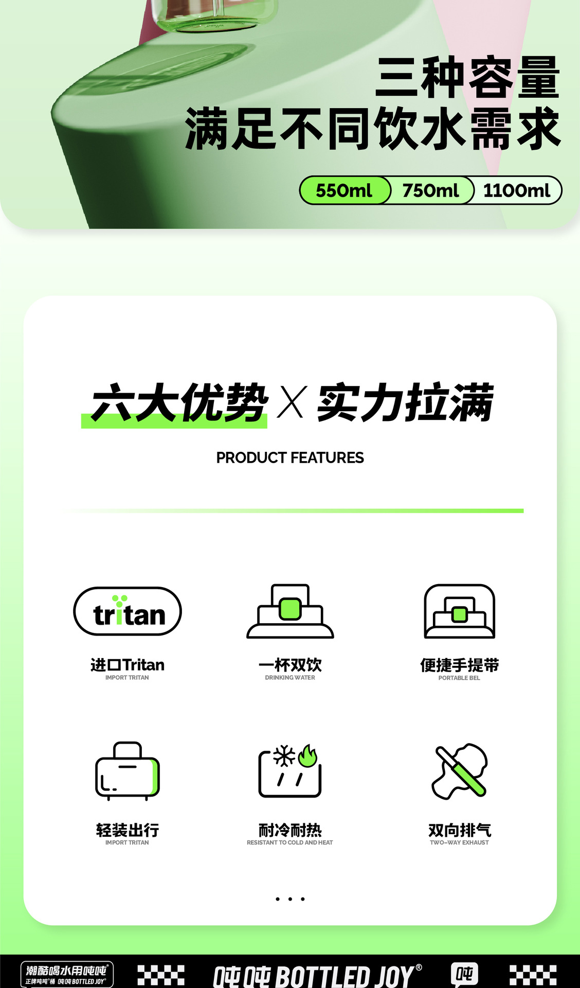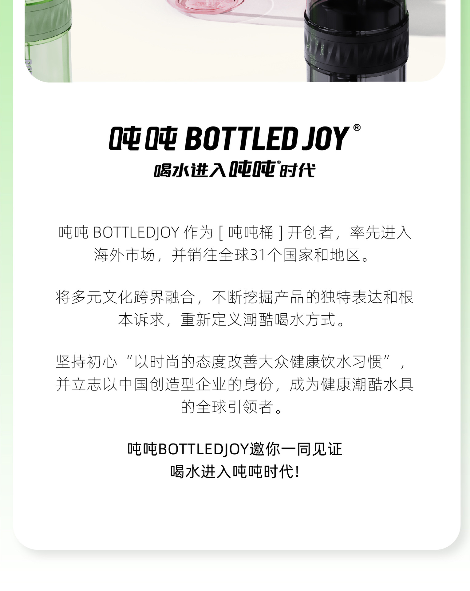 正牌瘦噸噸Bottled Joy食品級吸喝水杯戶外可攜式tritan材質直筒塑
