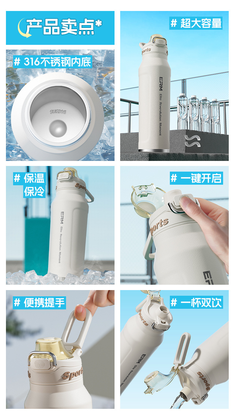 316不鏽鋼保溫保冷水杯子大容量戶外運動水壺男女學生上學專用