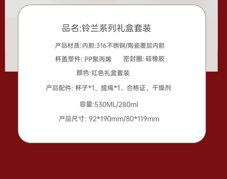 | 顔色 | 新高端鈴蘭花辦公盃紅色禮盒-陶瓷 |