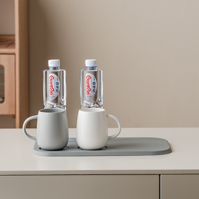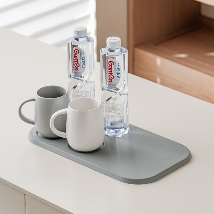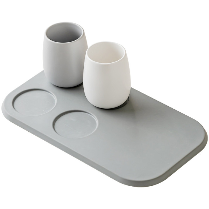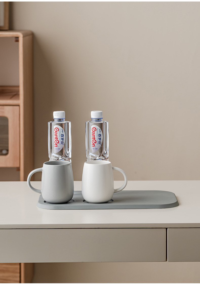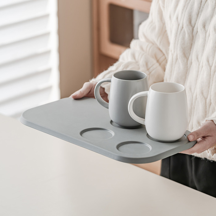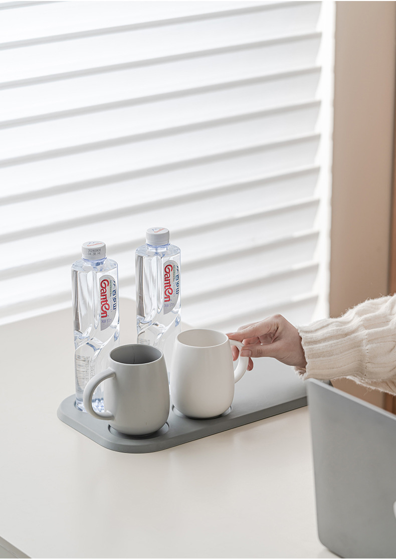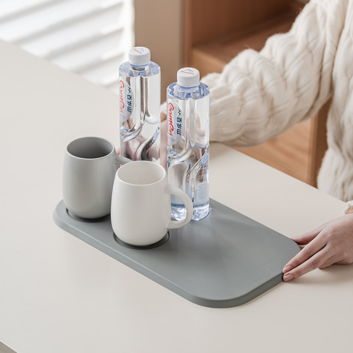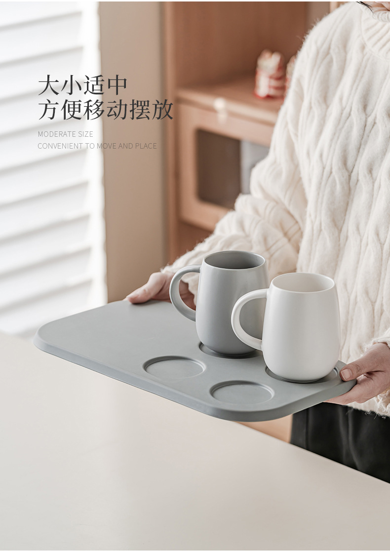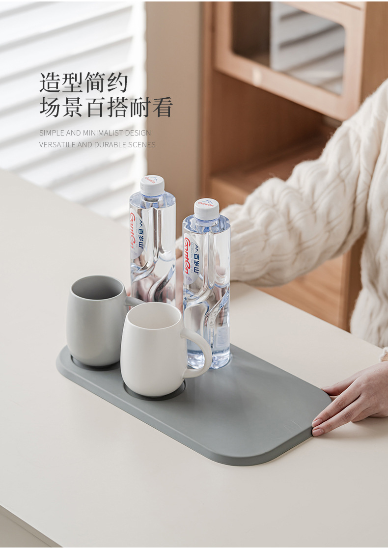 全季酒店茶盤密胺茶水台置物托盤灰色四孔長方形杯托餐廳防滑