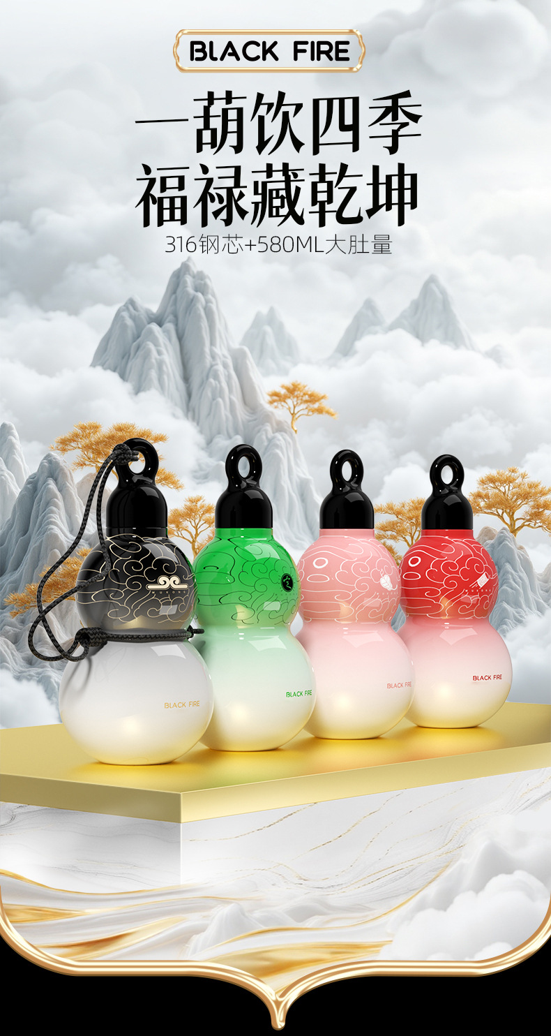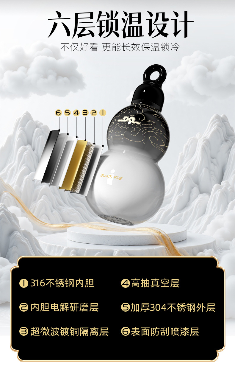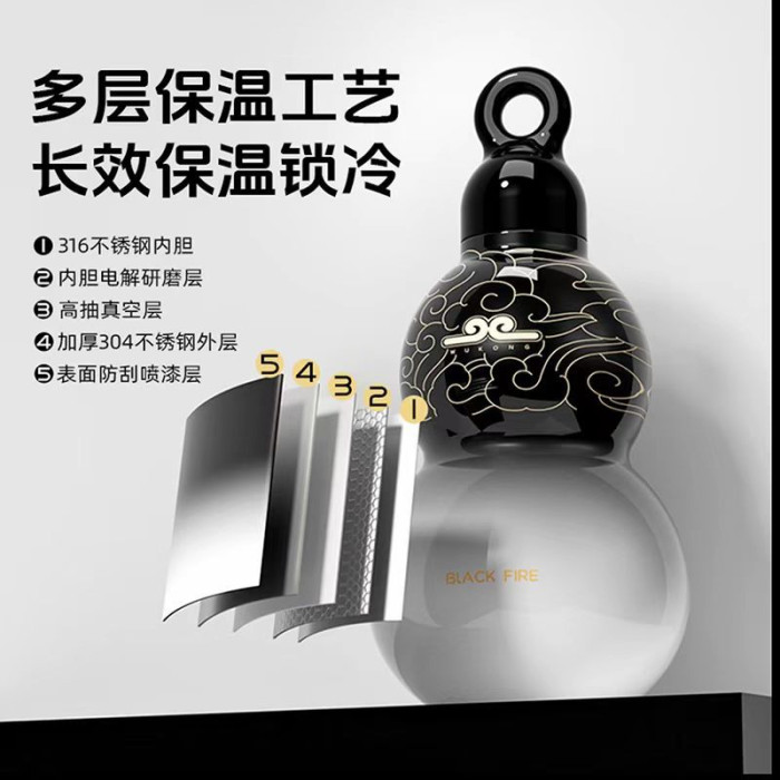 國潮葫蘆保溫杯316不鏽鋼高顔值車用水杯運動水壺戶外隨行杯