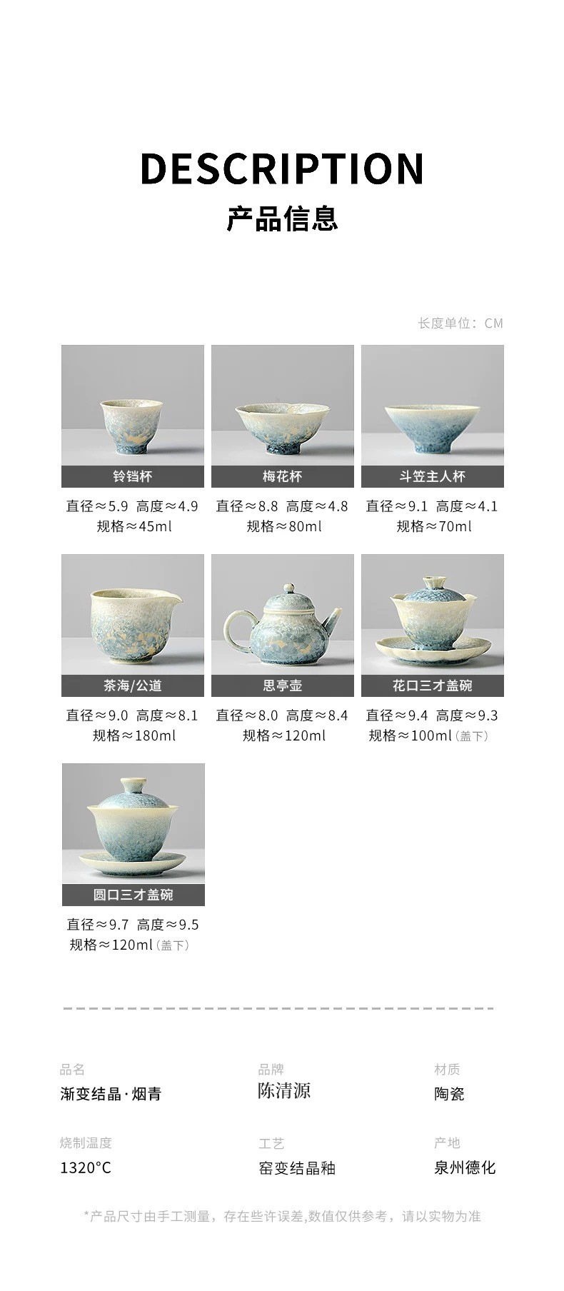 「菸青」180ML窰變結晶冰花陶瓷茶海分茶器公道杯功夫茶具伴手禮