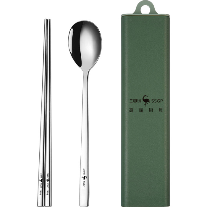 三四鋼®勺筷抖音頭部爆款不鏽鋼316學生上班族收納盒勺筷三件套