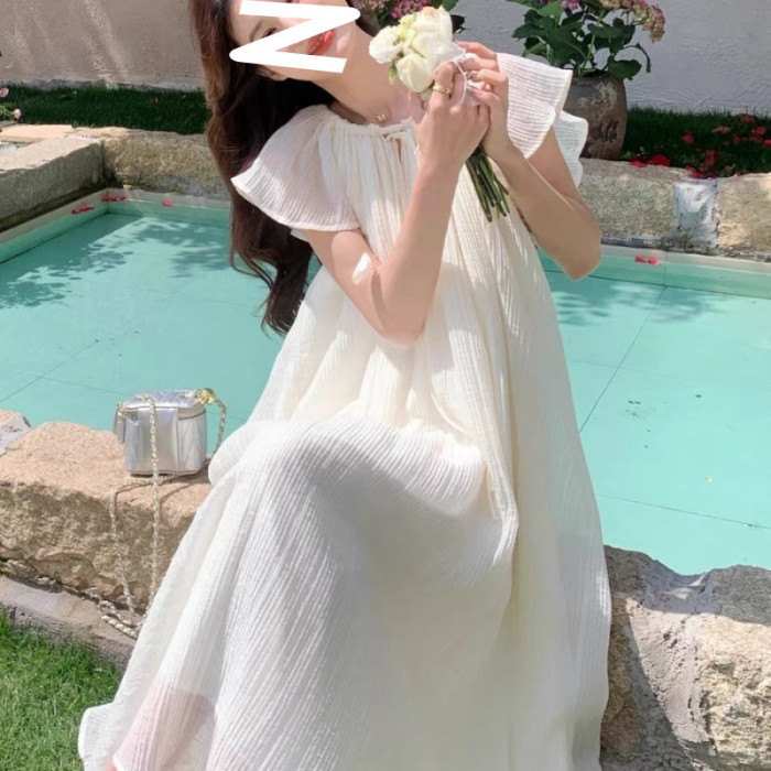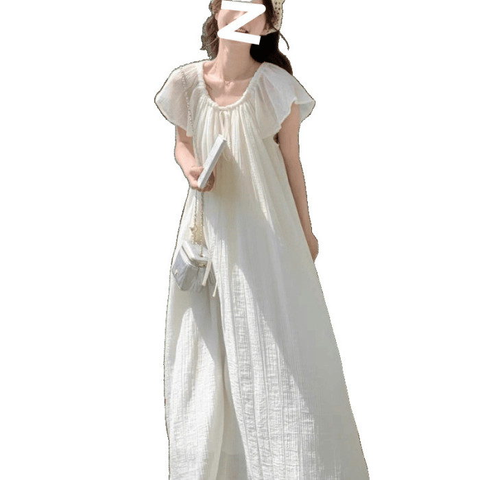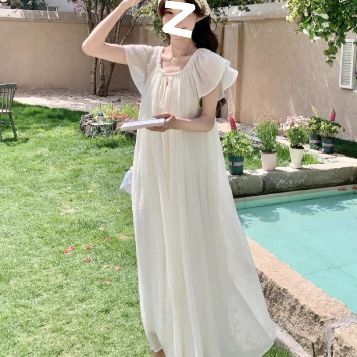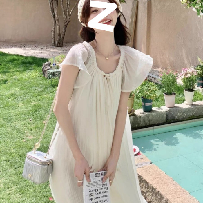 2025孕婦裝夏季時尚孕婦裝大碼裙子飛飛袖長裙網紗夏天孕婦連衣裙