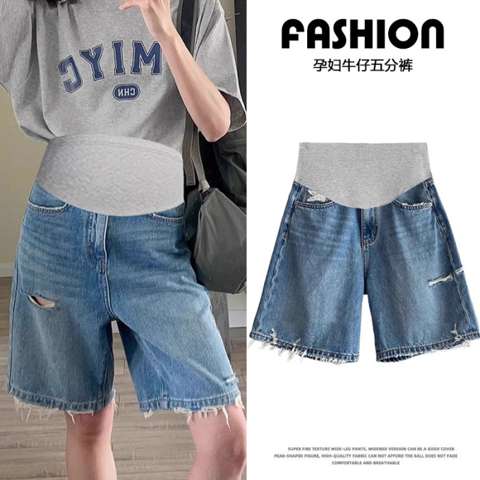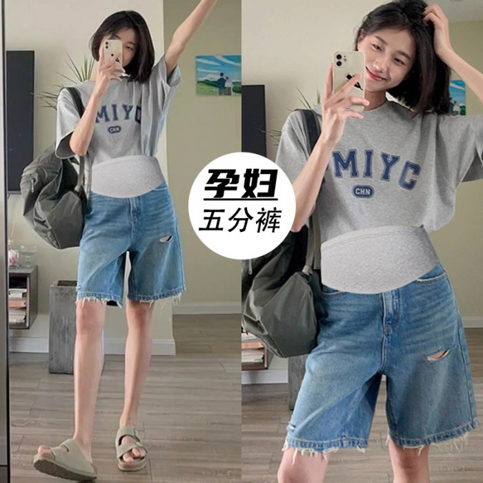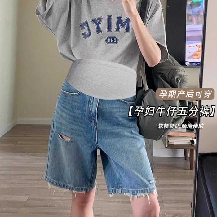孕婦牛仔短褲女夏季薄款外穿2025破洞五分寬松顯瘦休閒大碼濶腿褲