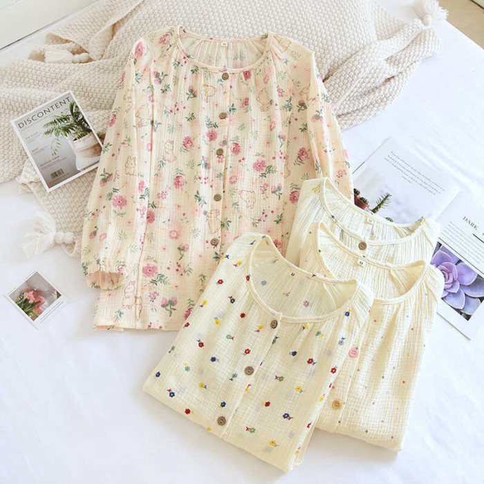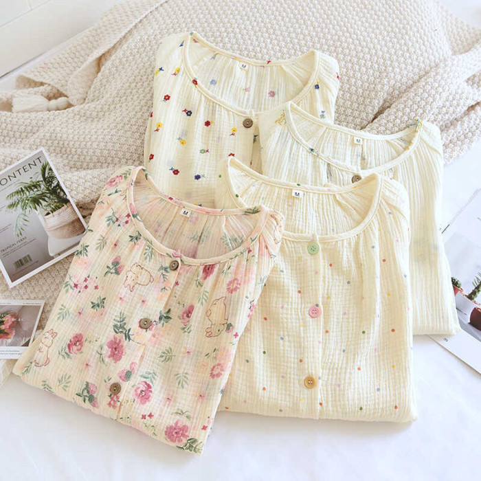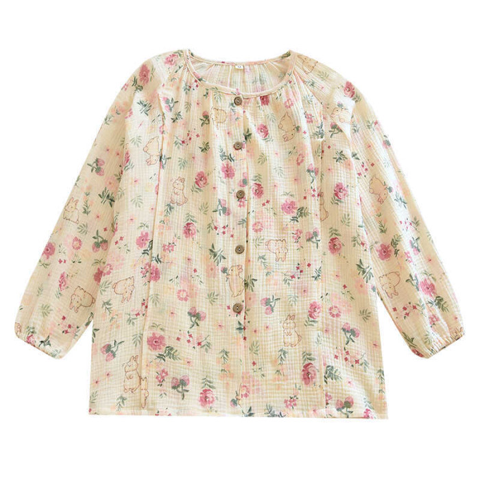 孕婦睡衣單件上衣春秋季純棉縐布哺乳衣夏薄紗布月子服産後喂奶衣