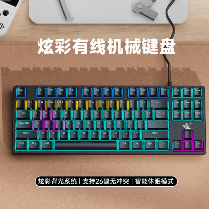 動力E族K200真機械鍵盤有線電競87鍵吃雞商務辦公混光遊戯鍵盤USB