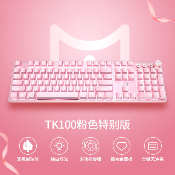 前行者 912粉色機械鍵盤滑鼠套裝有線電競遊戯鍵鼠 青黑軸鍵盤