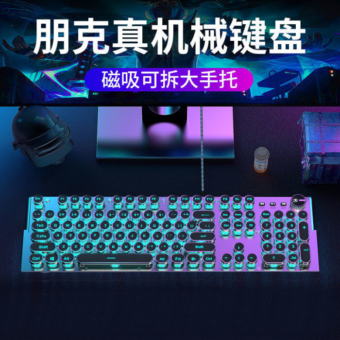X60蒸汽龐克電競機械鍵盤網吧機械遊戯鍵盤滑鼠電腦外設有線