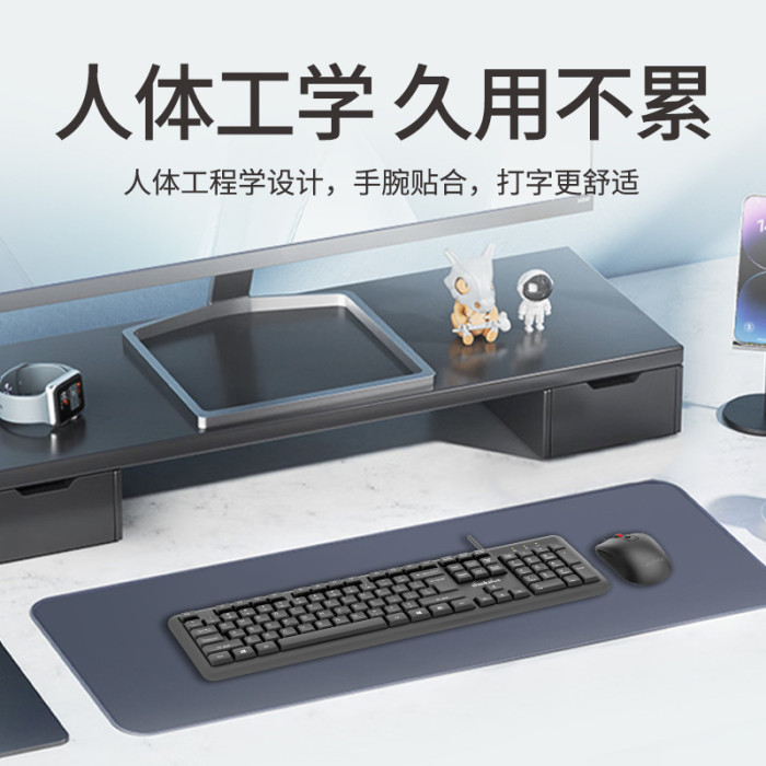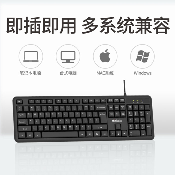 聯想thinkplus KM120 Pro有線鍵盤滑鼠套裝桌上型筆記型電腦鍵鼠通