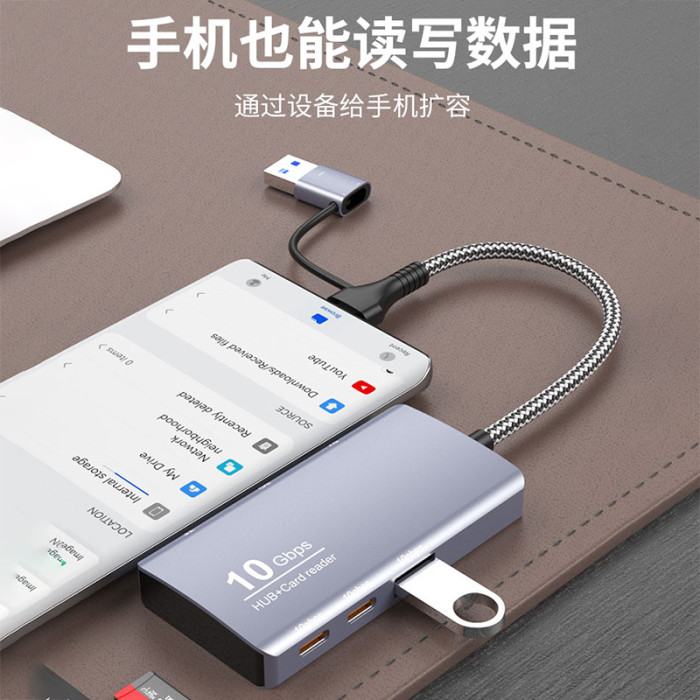 | 接口數 | 10Gbps速率【雙頭6合1】USB3.2x1+USB-C3.2x2+SD/TF+Typec供電口 |